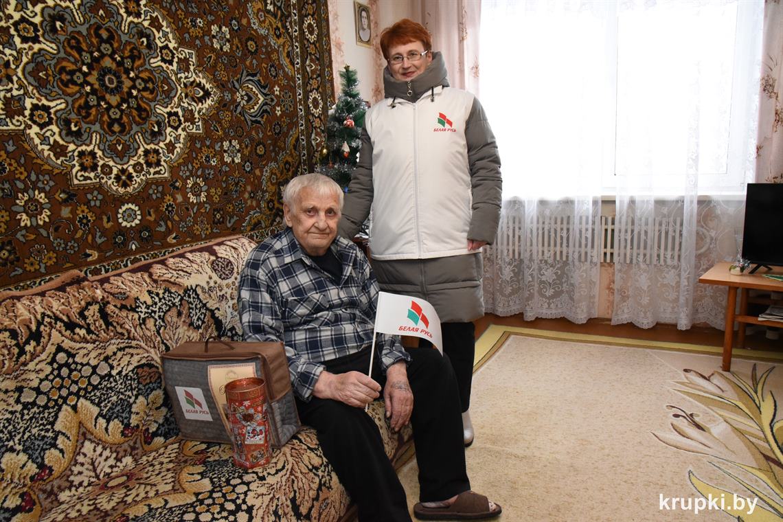 Председатель Крупской районной организации РОО «Белая Русь» Жанна Ходатович навестила долгожителя Крупок Анатолия Васильевича Шабайло, который 1 января отметил 90-летний юбилей. Жанна Владимировна пожелала крепкого здоровья, бодрости духа, всех земных благ и вручила подарки.