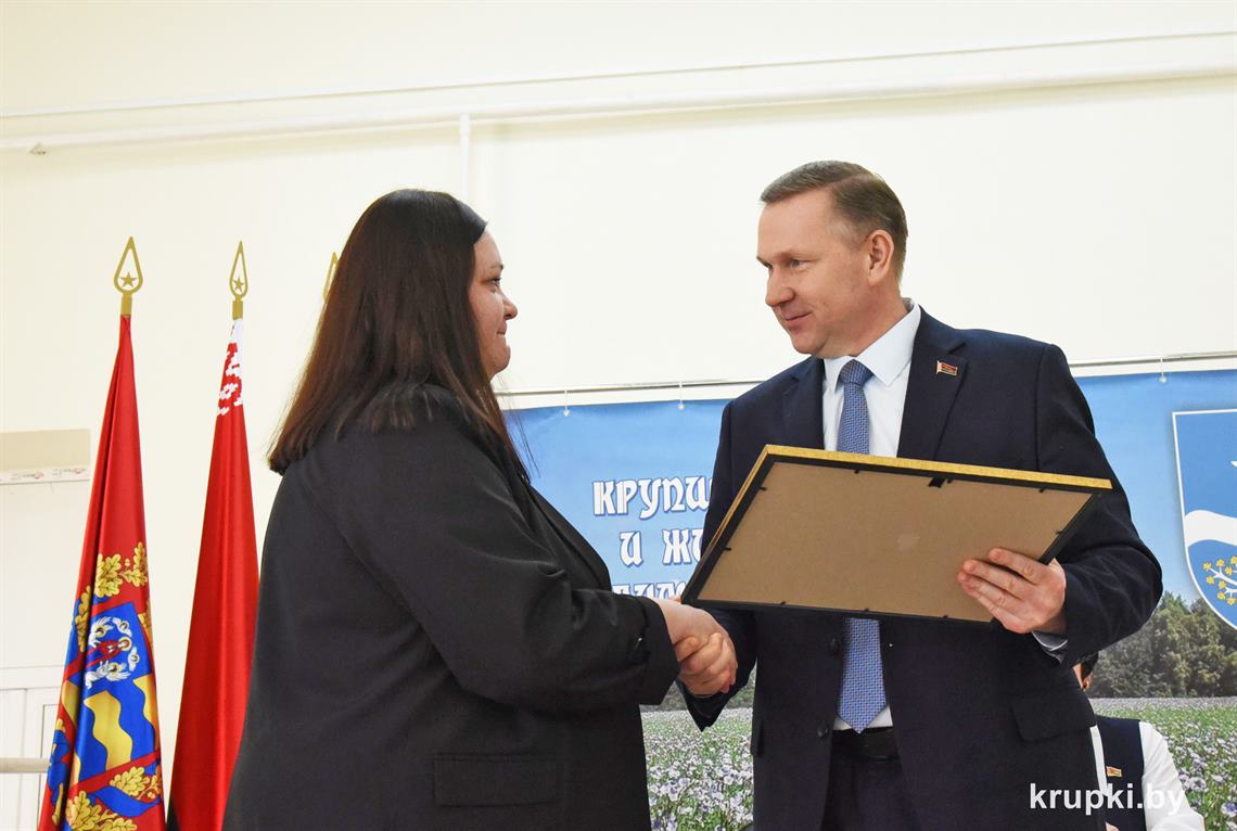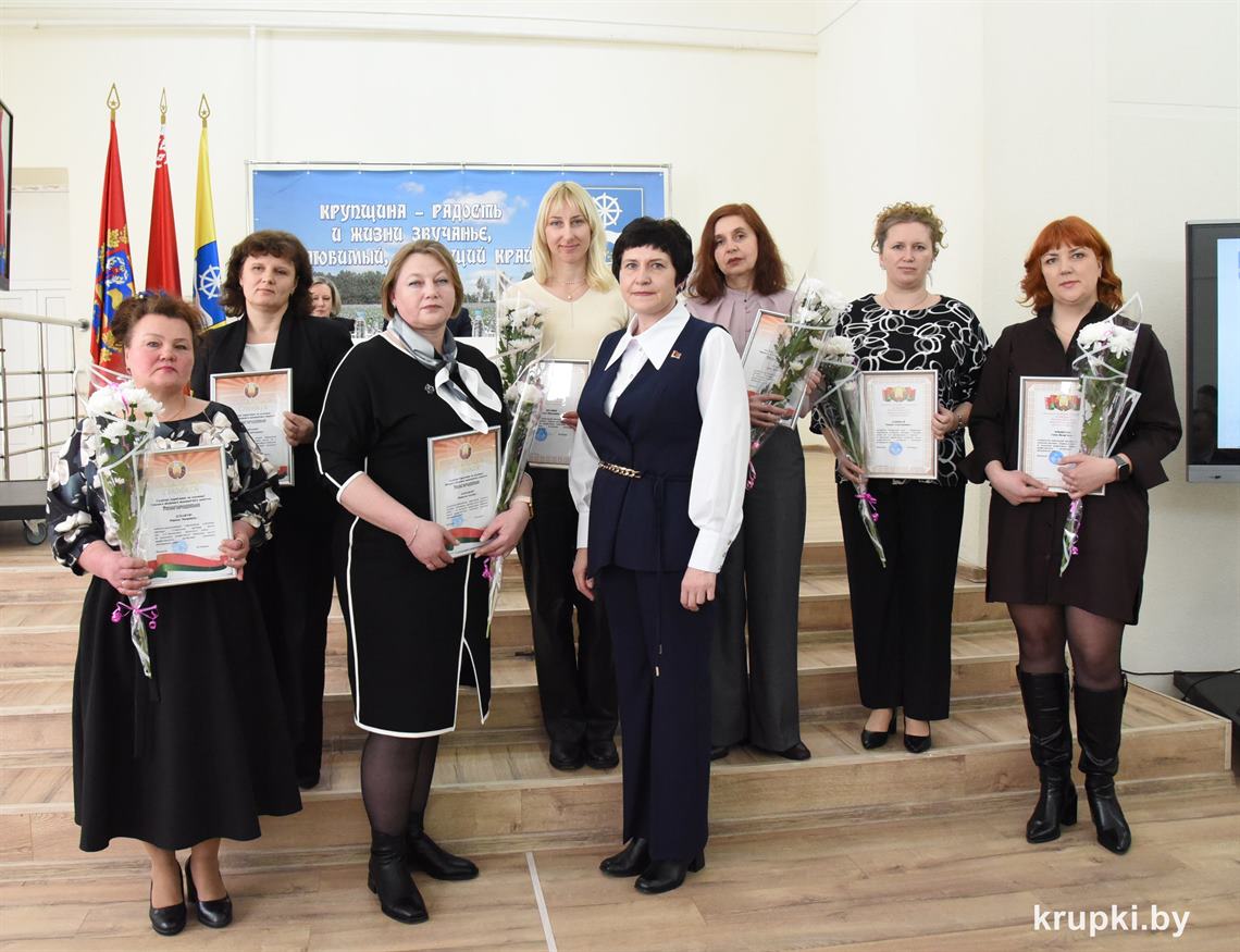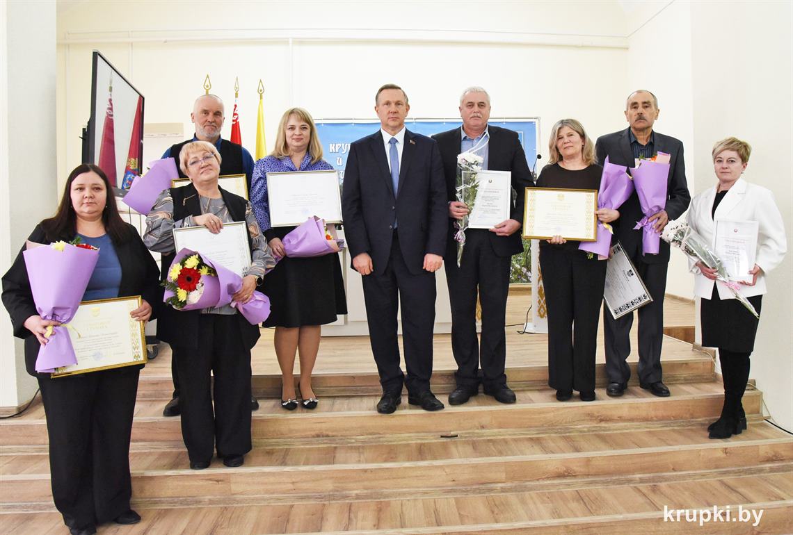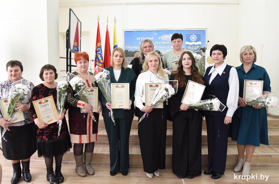 За добросовестную и плодотворную работу, значительный личный вклад в образование и воспитание подрастающего поколения Почетные грамоты Крупского райисполкома вручены Елене Пахомовой, учителю истории СШ п.Крупский, Сергею Сачуку, педагогу дополнительного образования Крупского ЦДТ, Веронике Селицкой, директору Крупского ЦДТ.