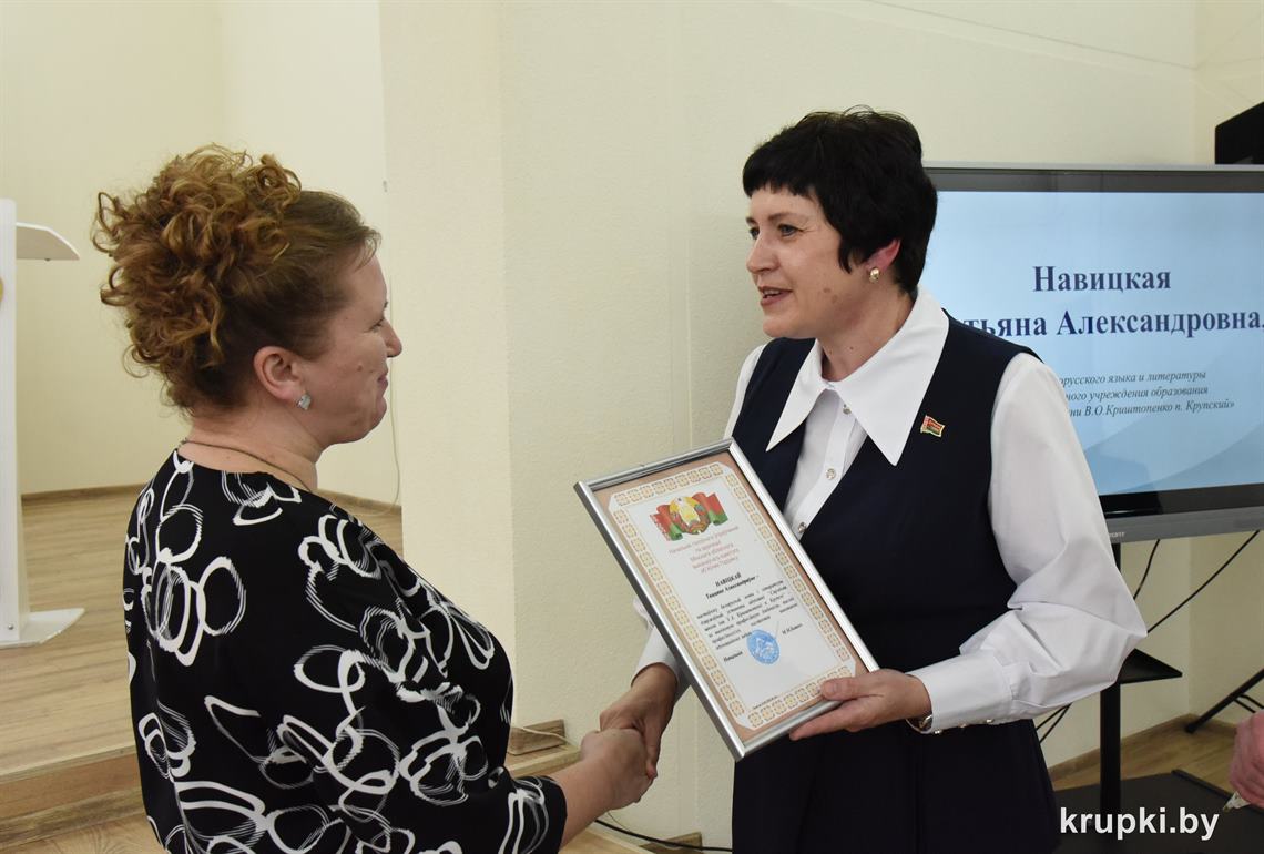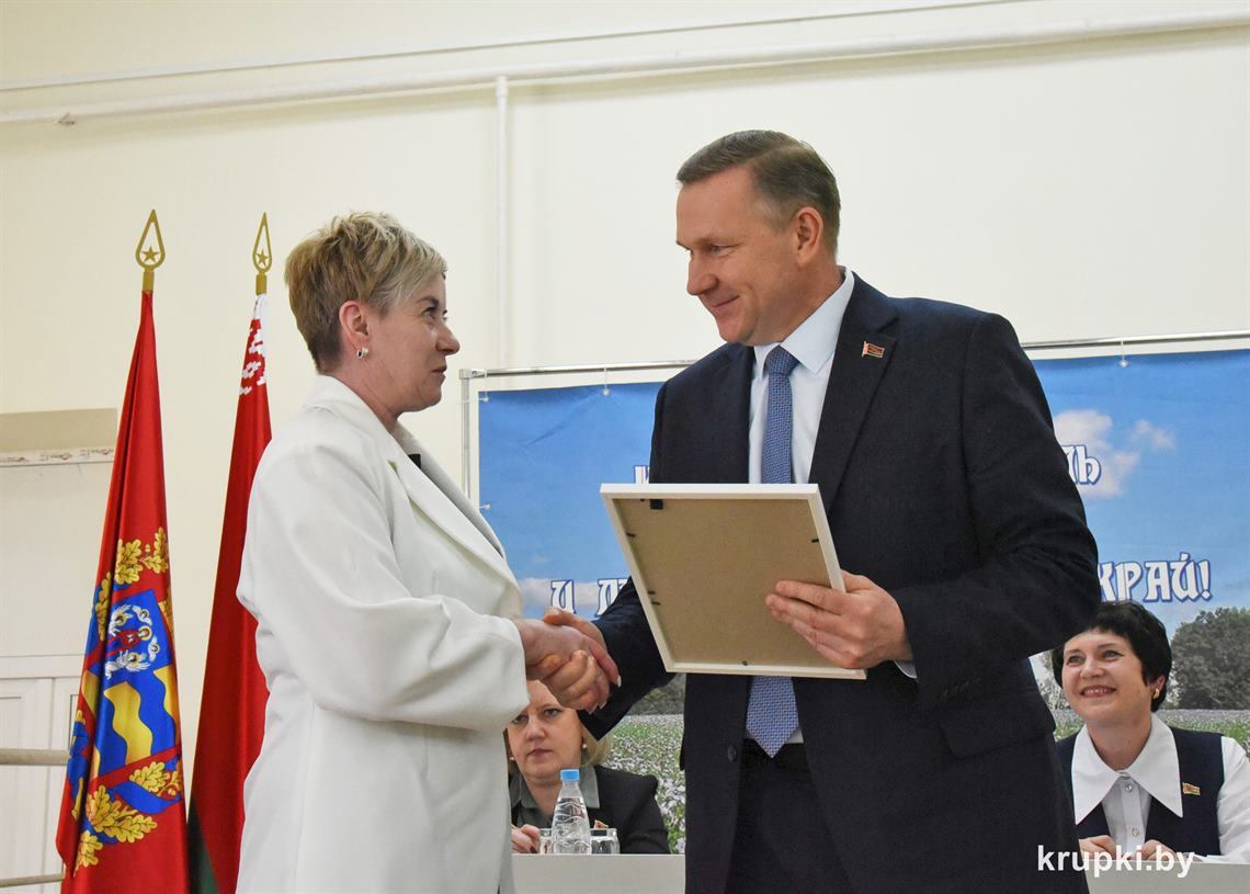 За результативную профессиональную деятельность, успешное выполнение образовательных задач Татьяна Стибикина вручила работникам системы образования и спорта Почетные грамоты и Благодарности главного управления по образованию Минского облисполкома, награды от управления по образованию и спорту Крупского райисполкома, районного отдела по чрезвычайным ситуациям.