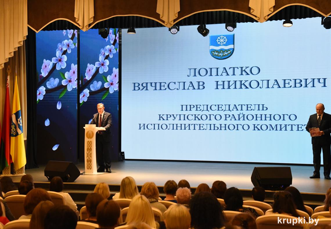 С приветственным словом к виновницам торжества обратился председатель Крупского райисполкома Вячеслав Лопатко. Его слова звучали с особой теплотой и уважением, подчеркивая значимость женского труда и материнства.