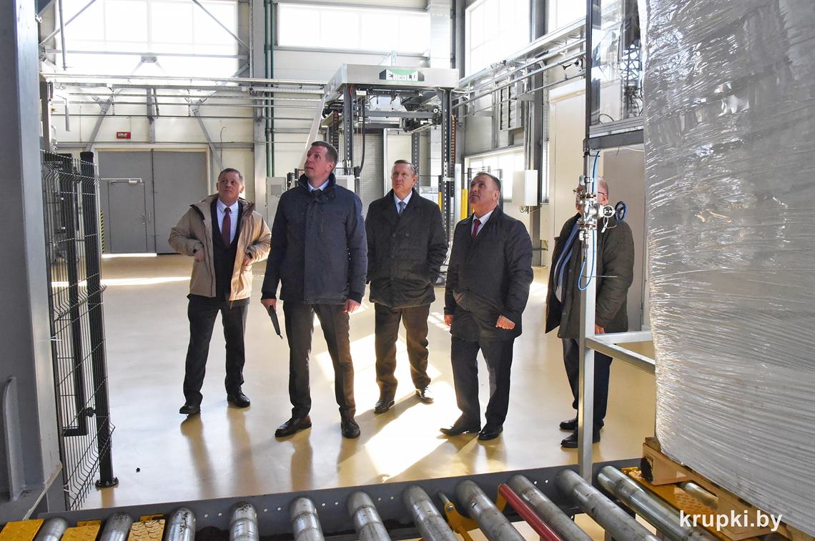 После диалога с коллективом Александр Кохан вместе с Вячеславом Лопатко и руководством филиала осмотрел производственные цеха, оценив масштабы модернизации и потенциал предприятия для развития сельских территорий.