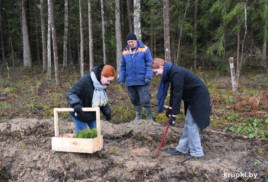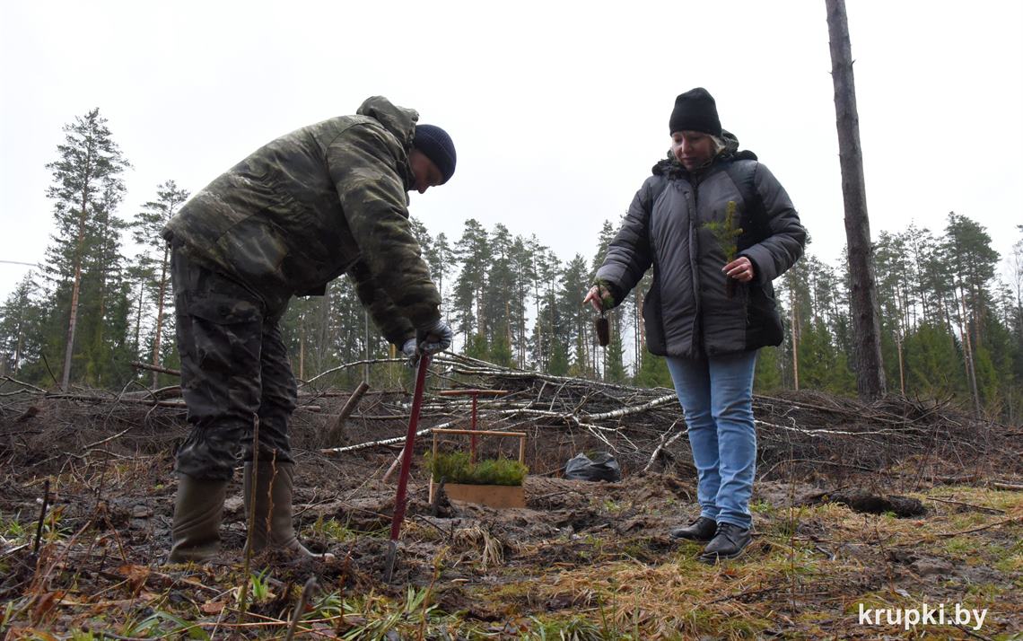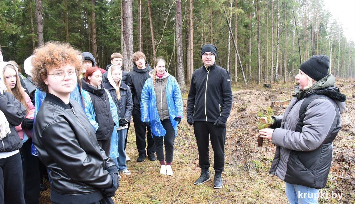 Заместитель руководителя по идеологической работе Крупского лесхоза Наталья Камович рассказала о деятельности лесохозяйственного учреждения, провела инструктаж по технике безопасности и объяснила технологию посадки сеянцев. Сосна была выращена в Республиканском лесном селекционно-семеноводческом центре, а ель – в теплицах питомника лесхоза.