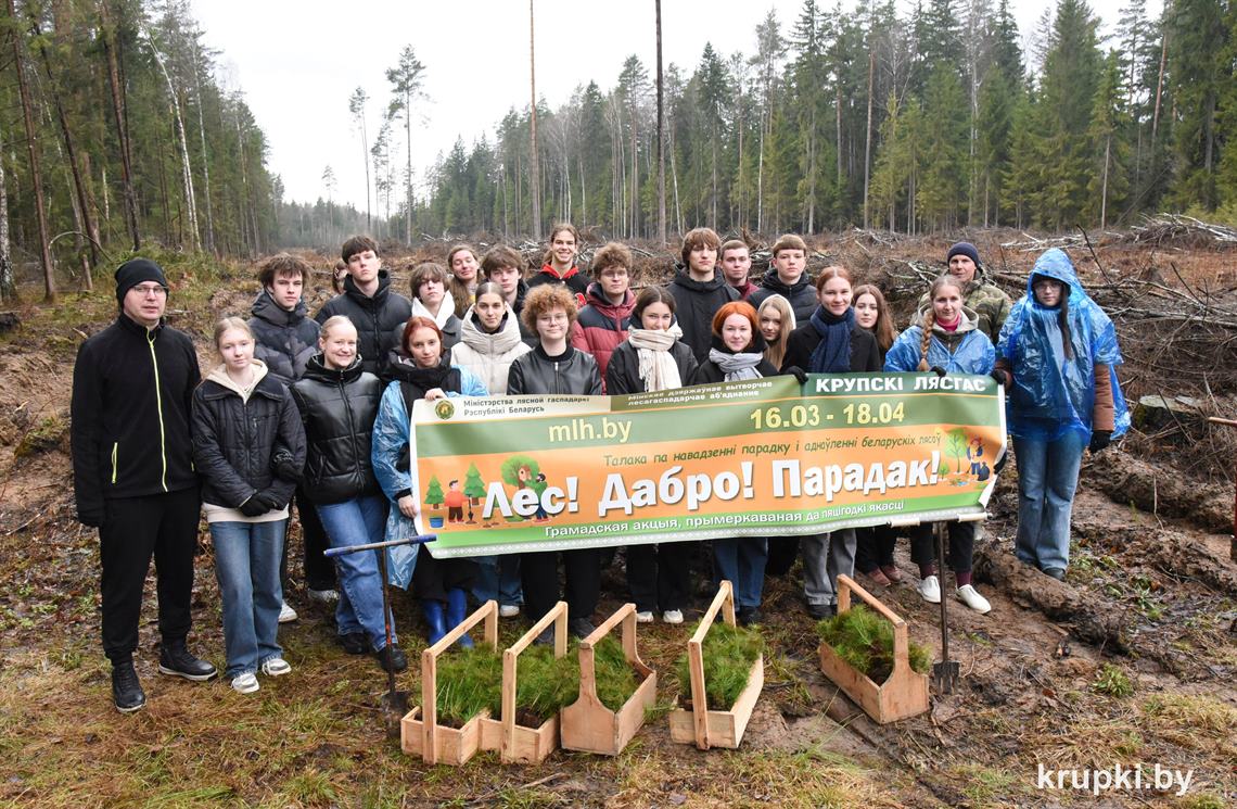 – Для лицея стало традиционным принимать участие в акциях по наведению порядка на земле, в том числе по посадке и возобновлению лесов, – комментирует заместитель директора по воспитательной работе Владислав Желнерович. – Лес – это наше богатство и национальное достояние. Осенью участвуем в масштабной республиканской кампании «Дай лесу новае жыццё». В 2024 году сажали лес в Крупском районе на участках, которые пострадали в результате сильных ветров. Тогда было высажено порядка 9-и тысяч саженцев. Посетили мемориальный комплекс Героя Советского Союза Василия Чеботарева. Сегодня тоже по завершению посадочных работ в лесу планируем завершить визит на Крупщину экскурсией памятного места, чтобы отдать дань уважения за мир и независимость. Ребята подготовили митинг-реквием.