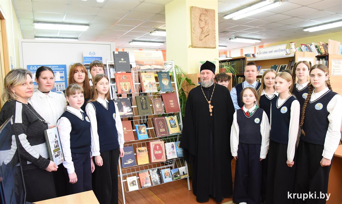 На одном из них мы побывали. В районной библиотеке 7-классники городской СШ № 1 встретились со священником Георгием Тюхловым. Вместе рассуждали на тему «Православная литература».