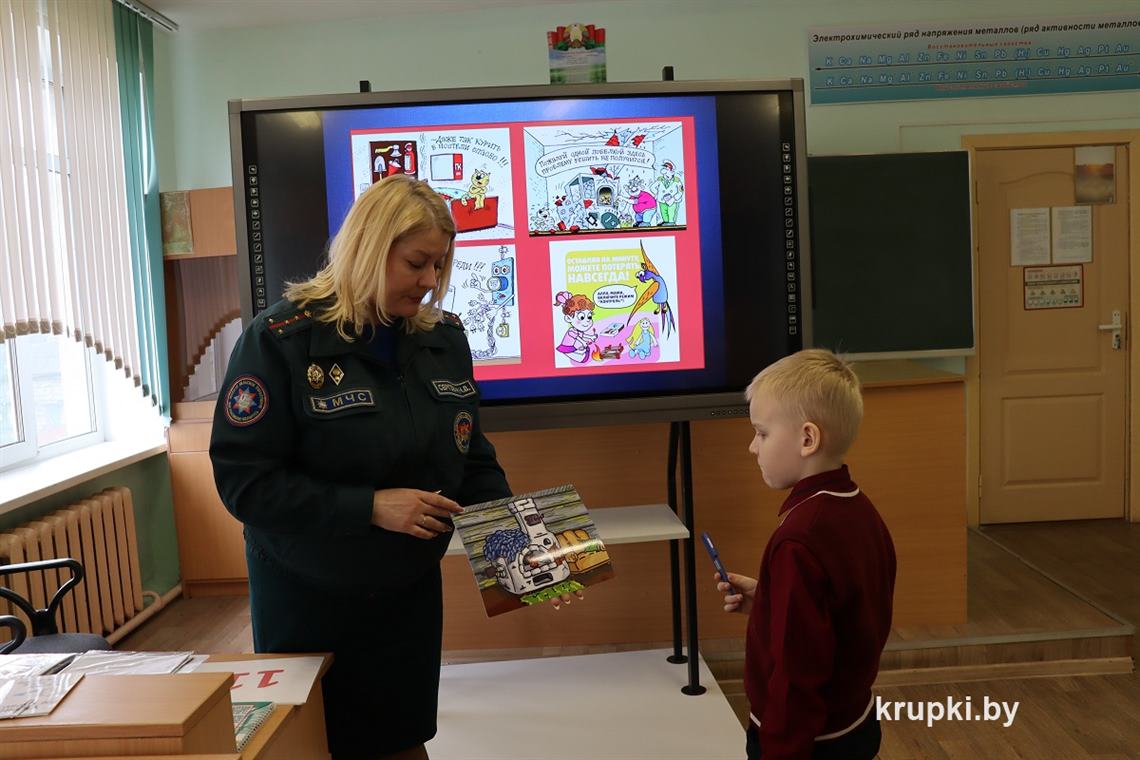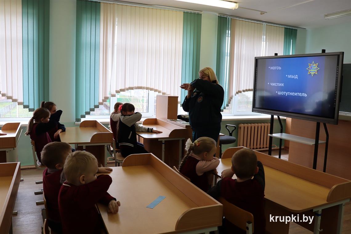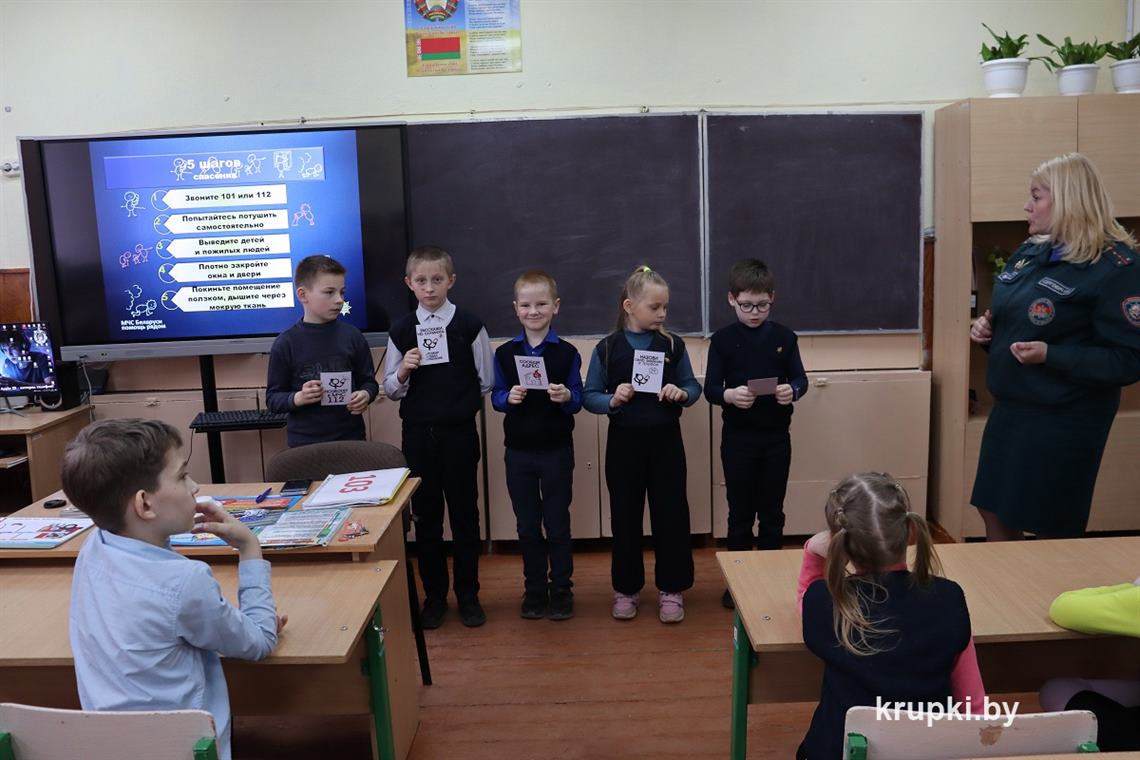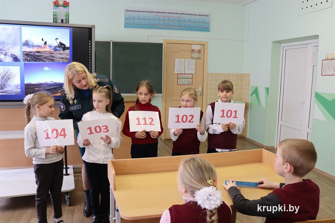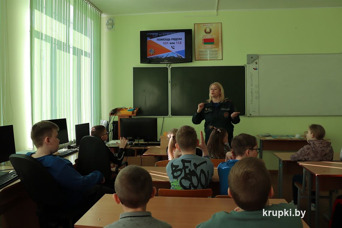 Очередные уроки безопасности прошли в Крупской районной гимназии, Холопеничской и Хотюховской средних школах. В числе учеников – учащиеся начальной школы и дошколята.