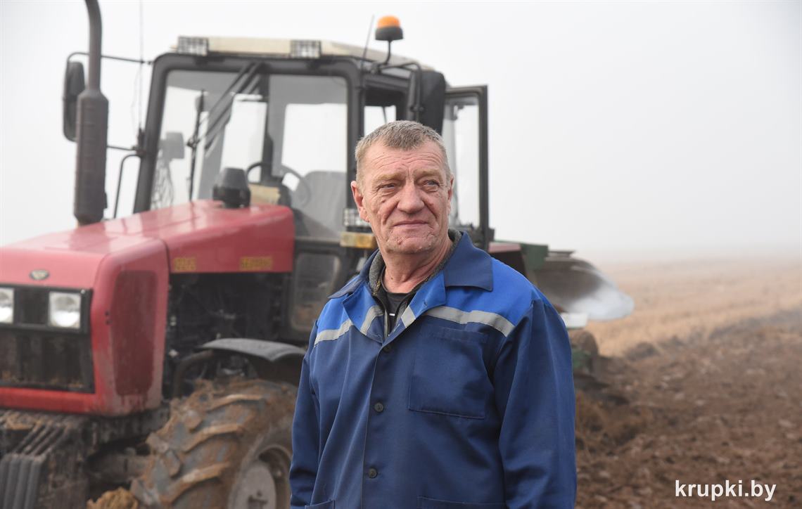 Какого мнения придерживаются сельские труженики? Держим путь в Щавры – здесь работает техника ОАО «Крупский льнозавод». Кого увидели в кабине трактора? Евгения Вишняка – чему особо и не удивились. Этого механизатора мы встречаем каждый сезон, причем далеко не однажды. Еще бы – без трех лет полвека в аграрной сфере. Все виды работ выполняет: удобрения вносит, лен сеет, прессует, теребит. Сегодня зябь поднимает.
