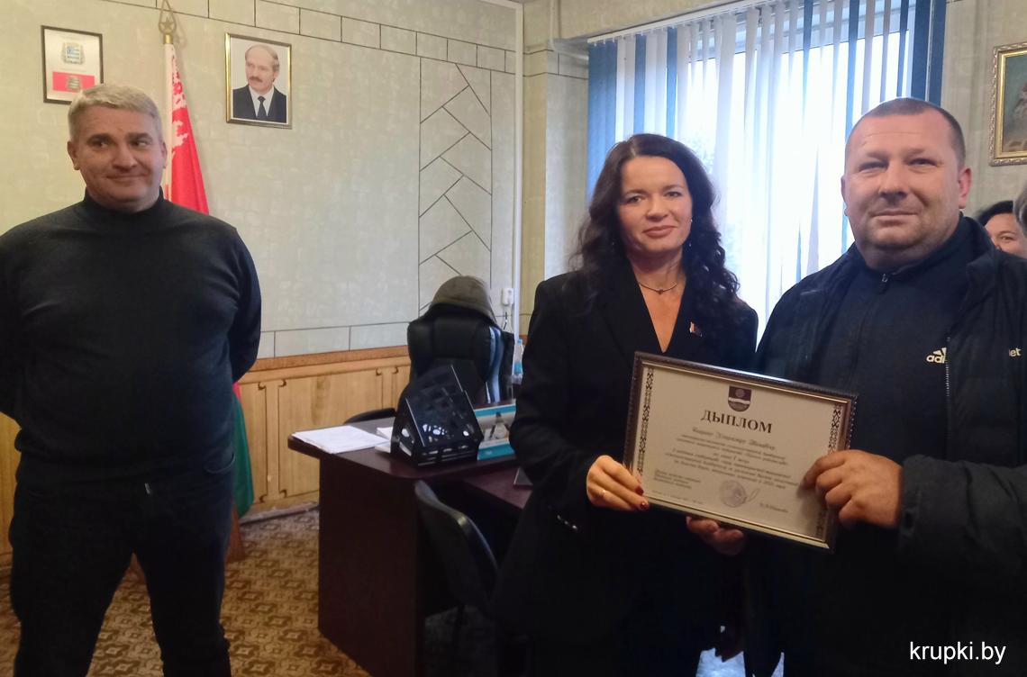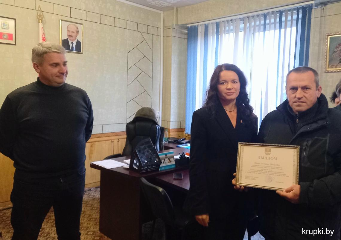 Юлия Комарова, заместитель председателя райисполкома, вручила Дипломы победителям ежегодного соревнования: Ольге Быковой, Василию Бородачу, Владимиру Богдану, Анатолию Колесеню, Дмитрию Ханько, Вячеславу Игнаткову, Николаю Горбачеву, Александру Шедко, Григорию Гапееву, Виталию Шульге, Михаилу Пустарнокову, Андрею Липченку.