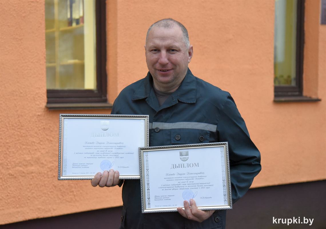 Отрадно, что наши труженики – в центре внимания. Они – в каждой номинации районного соревнования. Это Петр Бибик, Анатолий Белый, Андрей Сачивка, Андрей Климов – дважды победитель: на внесении твердых минеральных удобрений и на заготовке травяных кормов. На результат сработали также Александр Журавкин, Валерий Мазнев, Иван Картавицкий, Елена Щербак. Она, кстати, принимала участие в Форуме тружениц села, который проходил под эгидой Белорусского союза женщин. Под стать опытным работникам и молодежь. В победители вышли Виктор Аверьянов и Вячеслав Шалупкин.