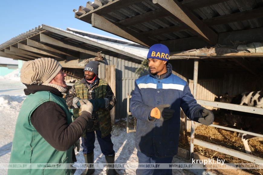 Белорусские коллеги встретили работников из Эфиопии с большой теплотой, поделилась бригадир. Рабочую одежду им закупили за счет хозяйства, дополнили зимний гардероб африканцев сельчане. Кто-то подарил шерстяные носки, кто-то теплую шапку, варежки. Местные с интересом расспрашивают африканцев о жизни на родине, знакомят с белорусскими традициями. Даже на обед новички идут вместе с девчонками-операторами. Можно сказать, подружились.