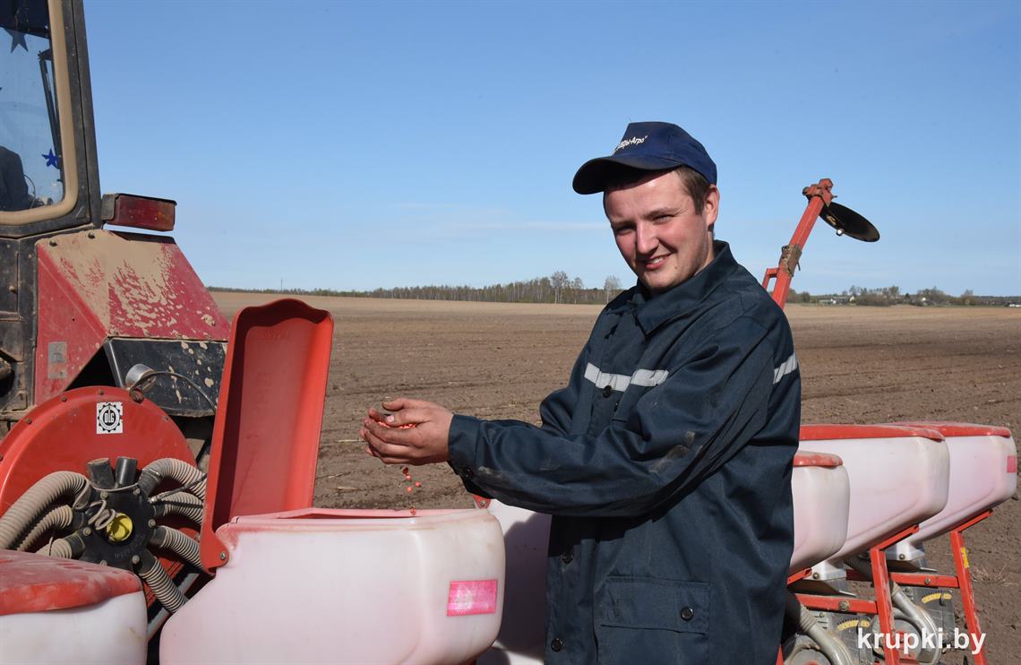 Убедились в этом, побывав в поле вблизи аг. Докудово. Там трудился молодой механизатор Сергей Крючок. В хозяйстве работает уже три года. И профессию выбирал целенаправленно – аграрную. Примером стал отец, который и привил Сергею любовь к земле.