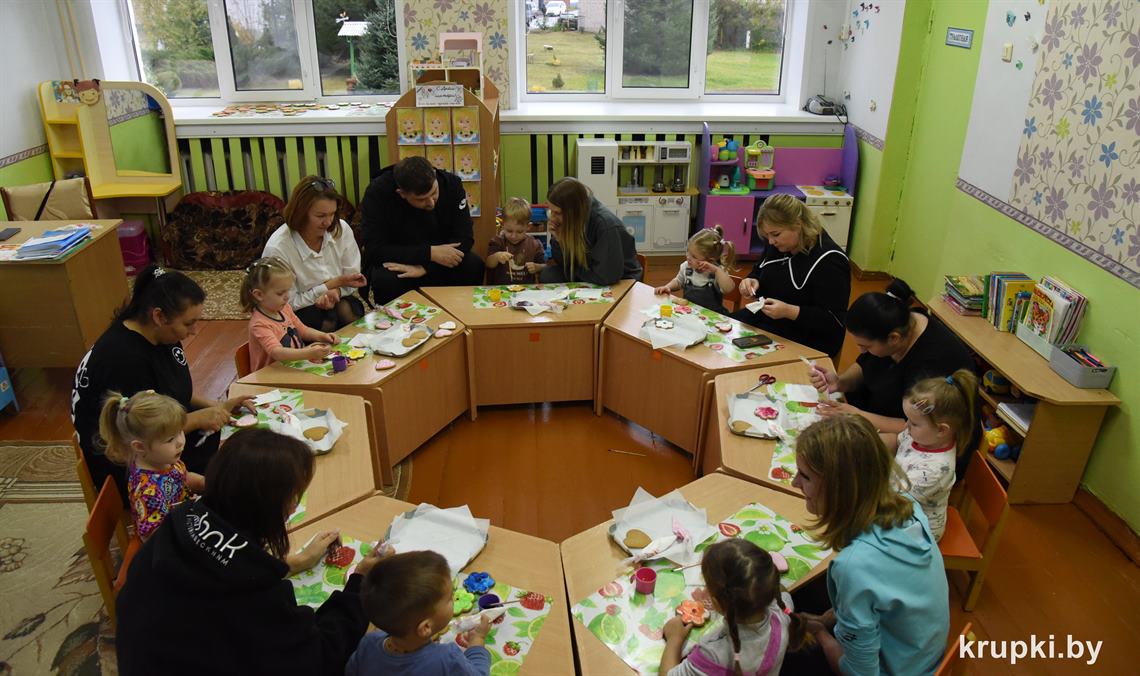Руководила процессом воспитатель Екатерина Ковган. Она рассказала, что впервые провела такой мастер-класс на районном этапе конкурса «Учитель года». Тогда ее оценивало жюри. А в этот раз Екатерина Геннадьевна без волнения делилась своими навыками.