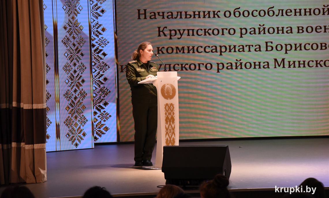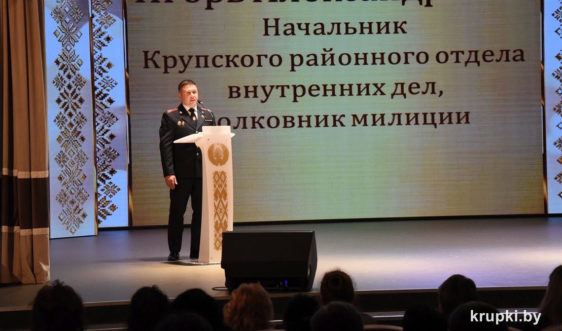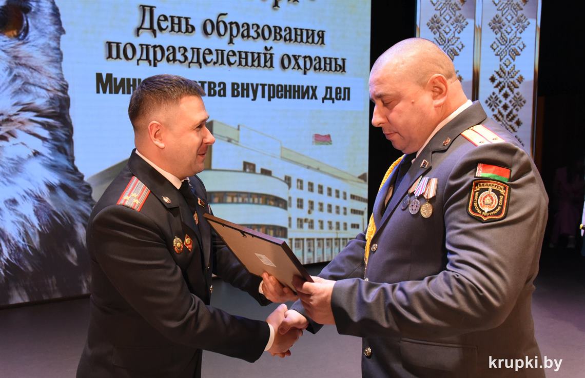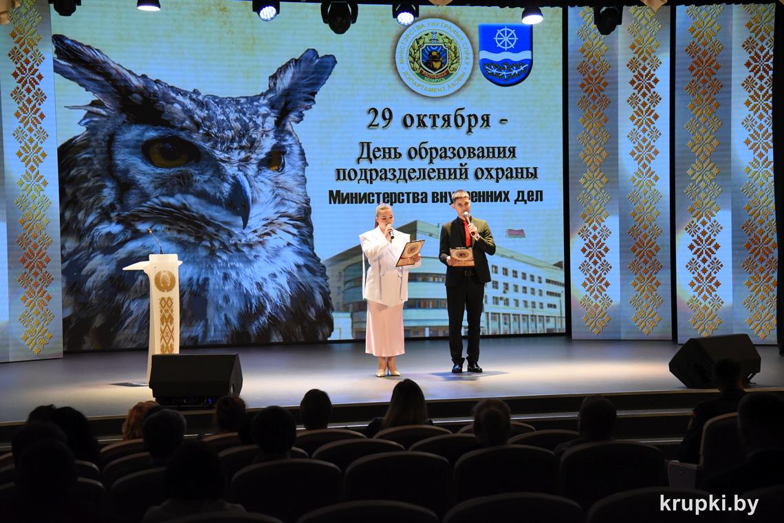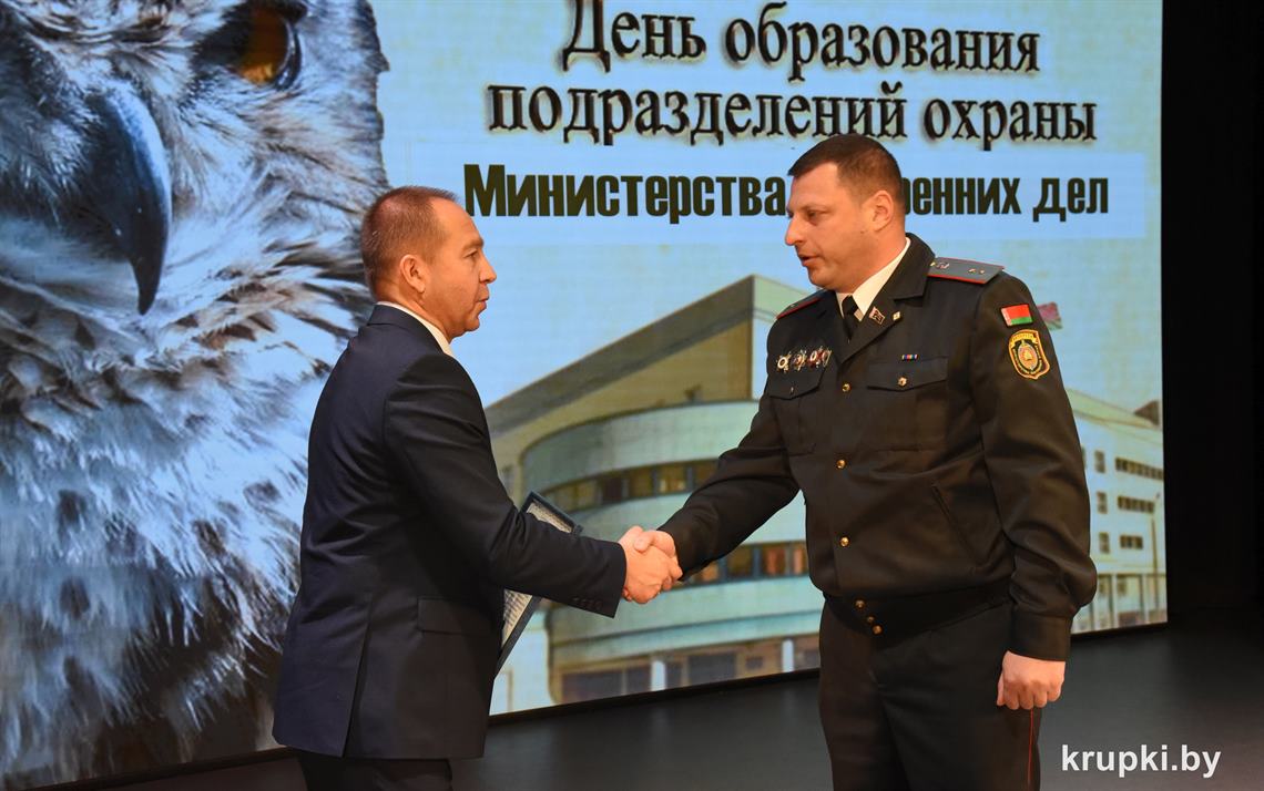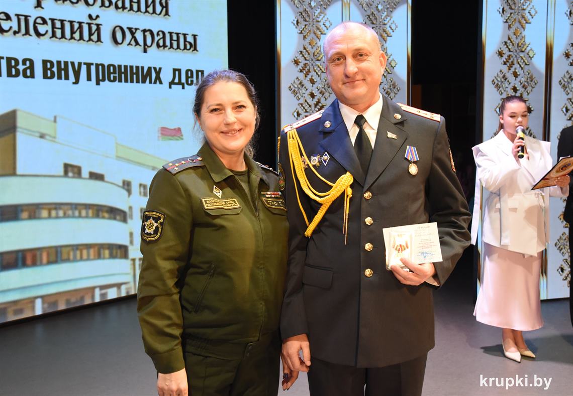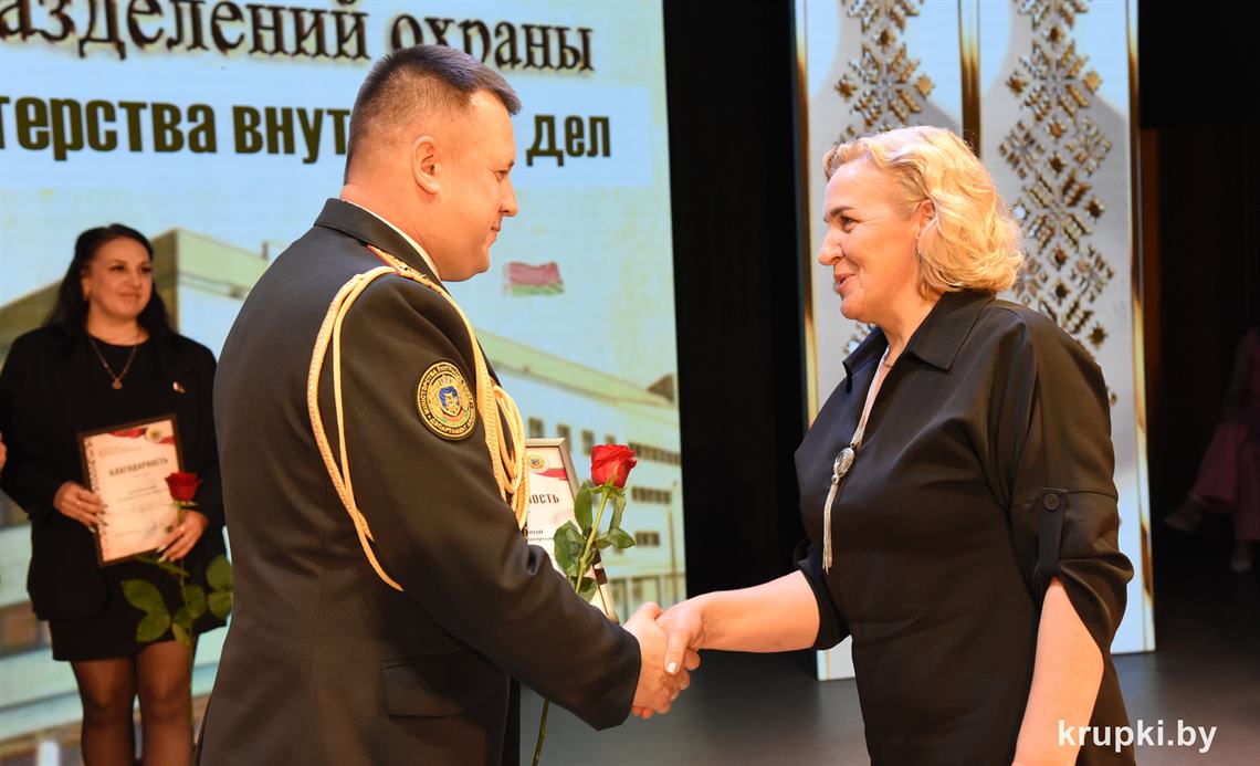 Почетной грамотой Крупского райисполкома отмечен Александр Альхимович - милиционер взвода милиции. Благодарность председателя Крупского райисполкома получила Елена Воронина - старший инспектор группы защиты государственных секретов и документационного обеспечения.