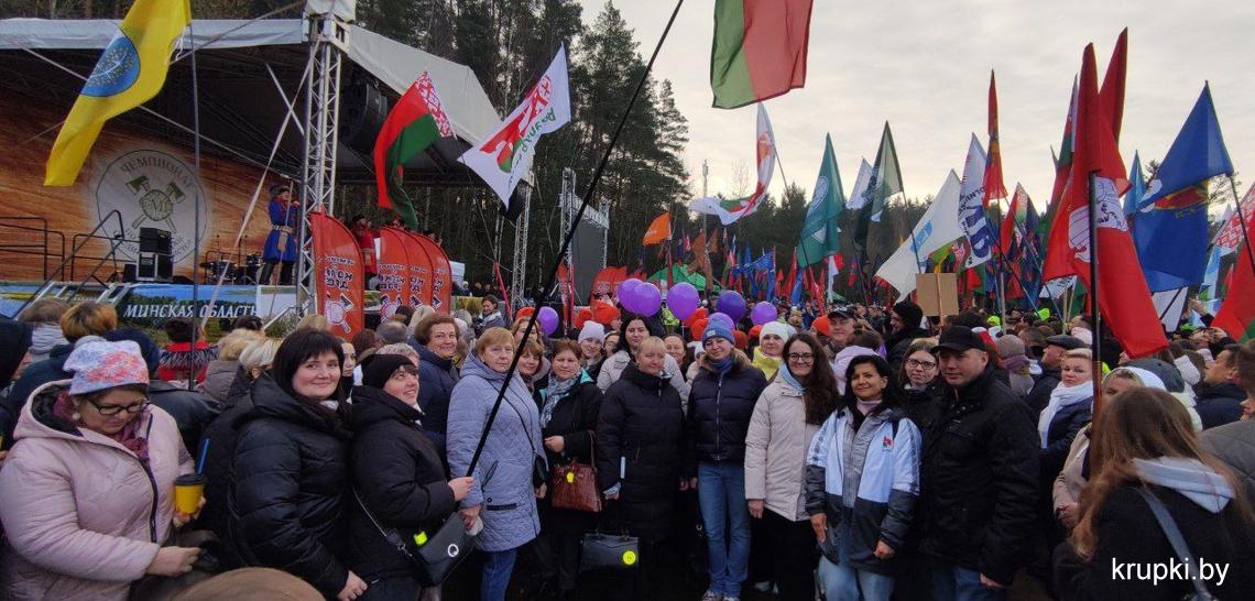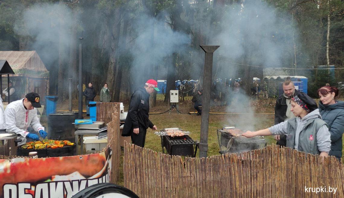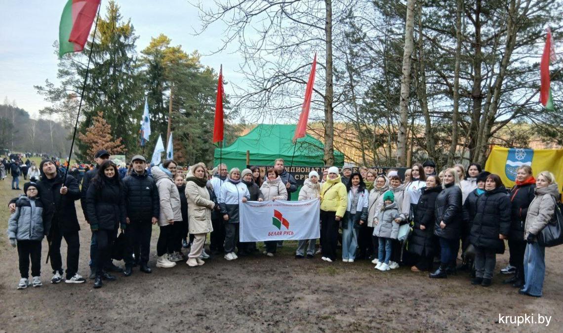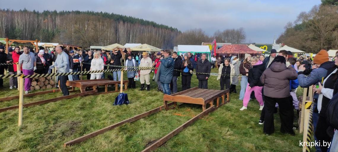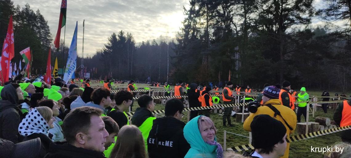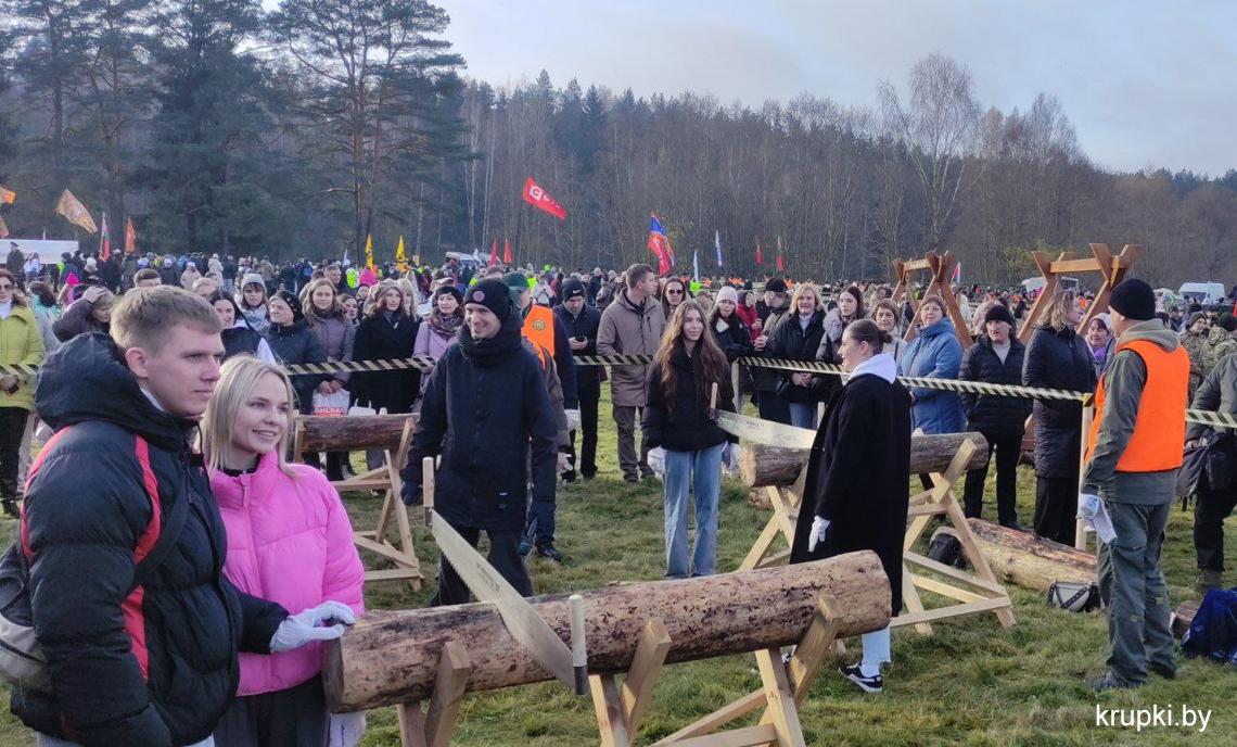 С хорошим настроением, позитивом и задором дружная команда из Крупок активно проводит время на чемпионате по колке дров среди СМИ.