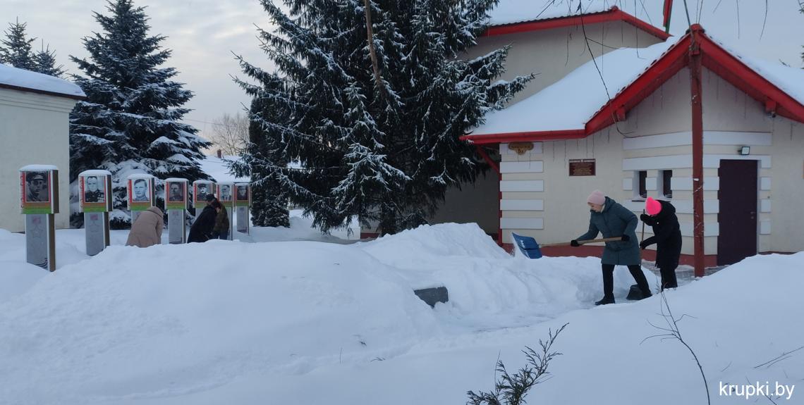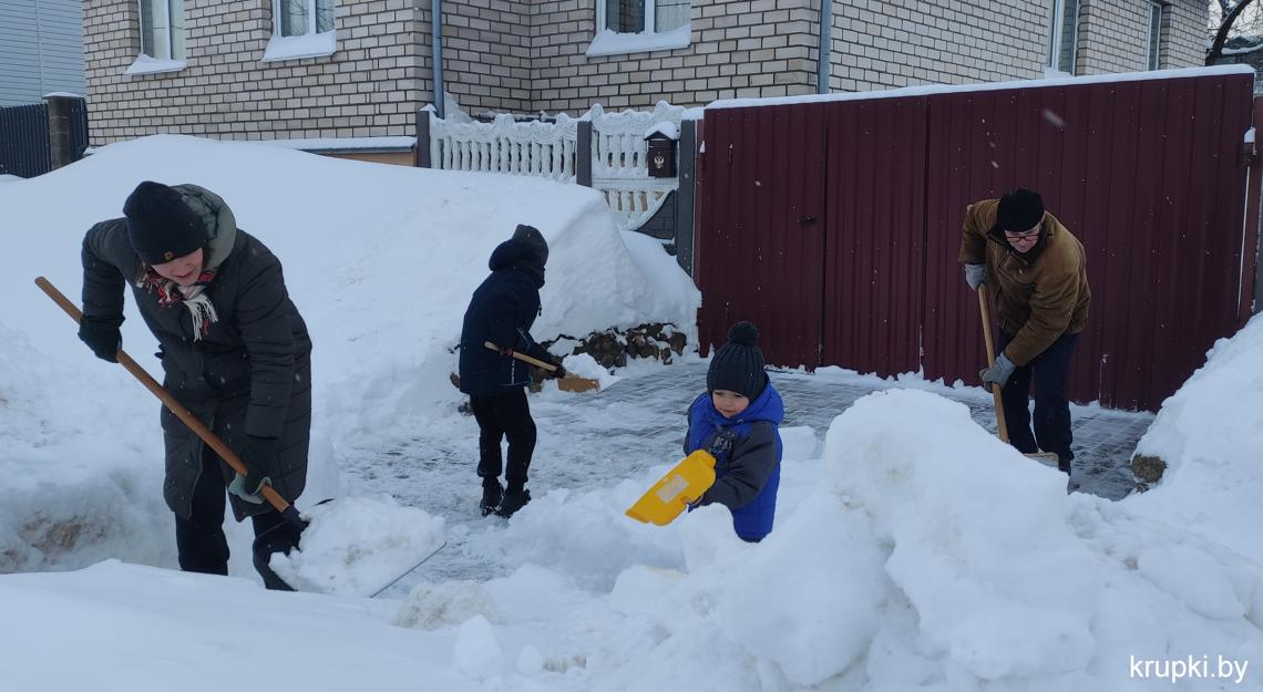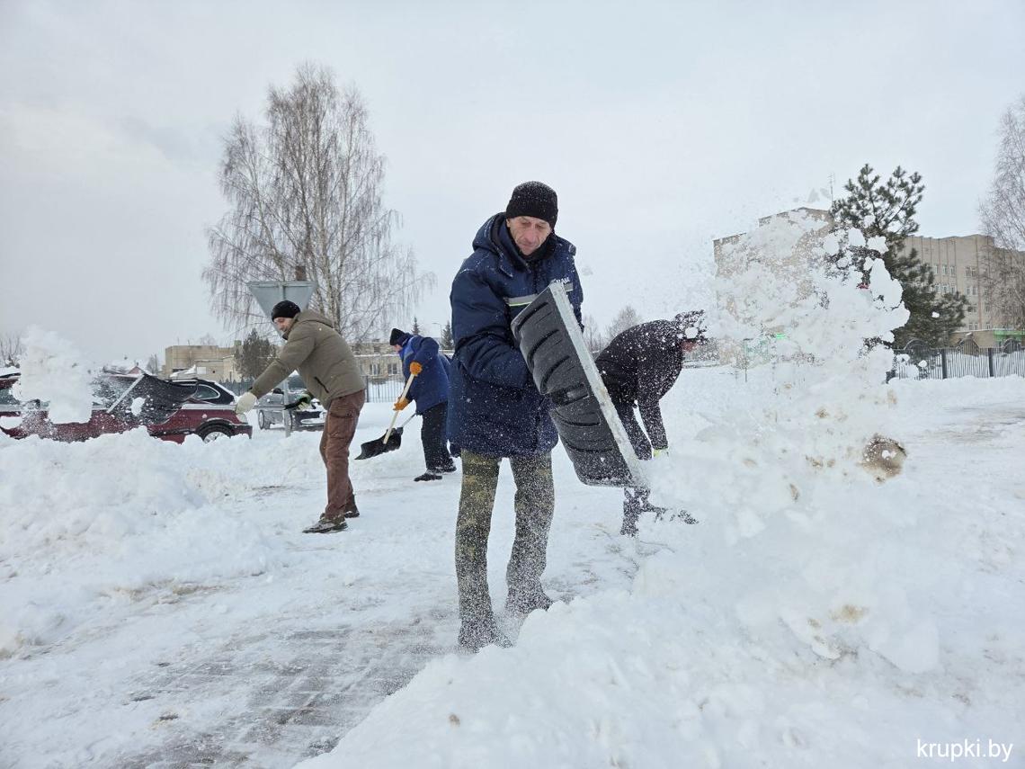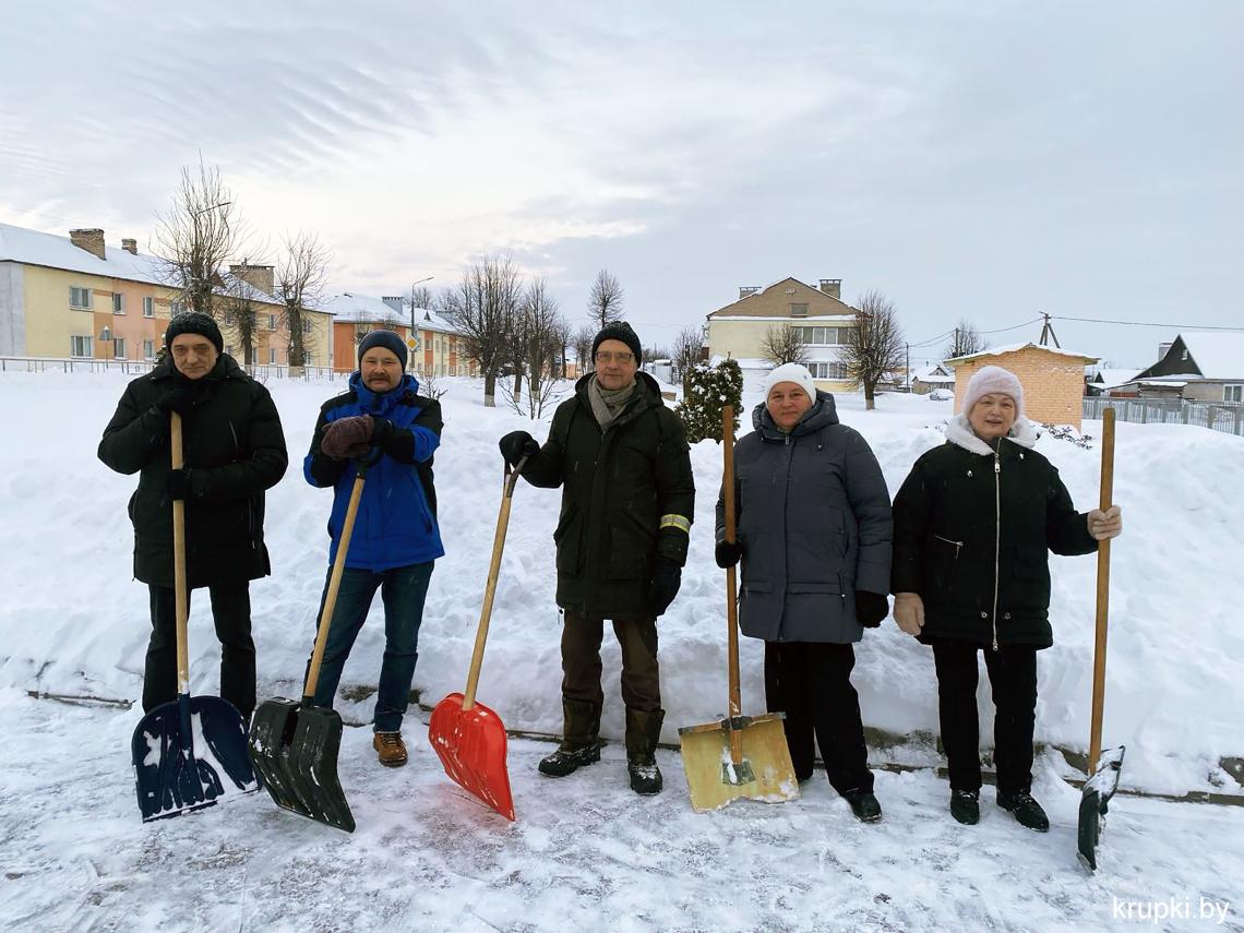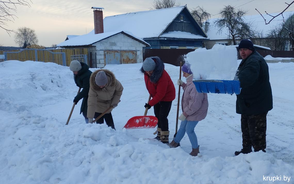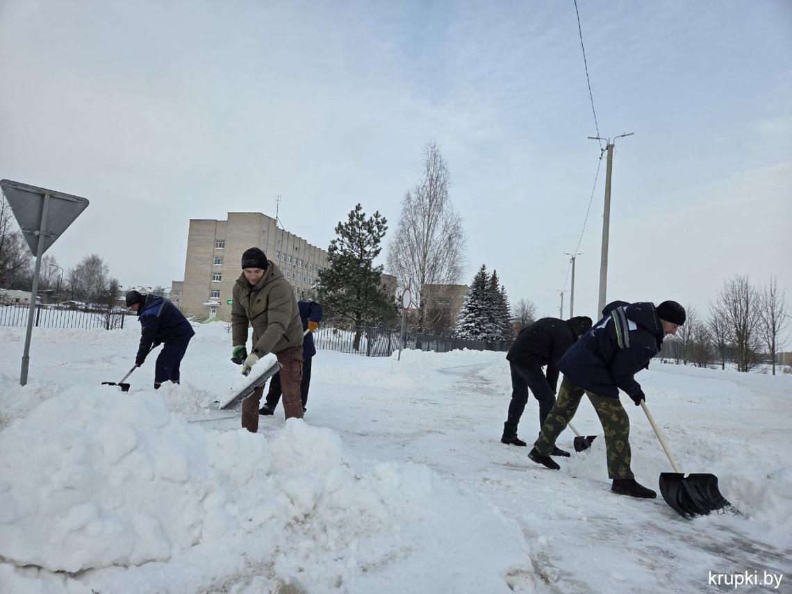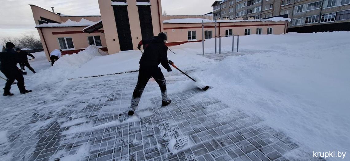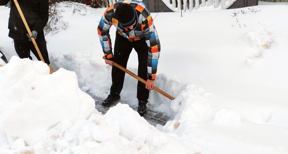 Крупская районная гимназия с самого утра включилась в уборку снега.