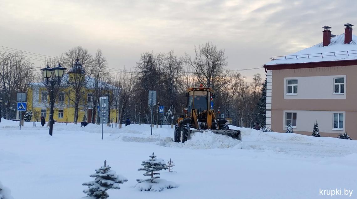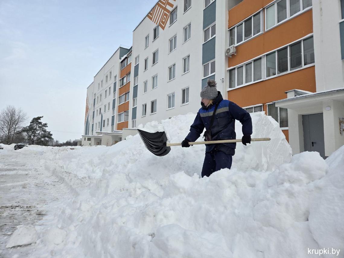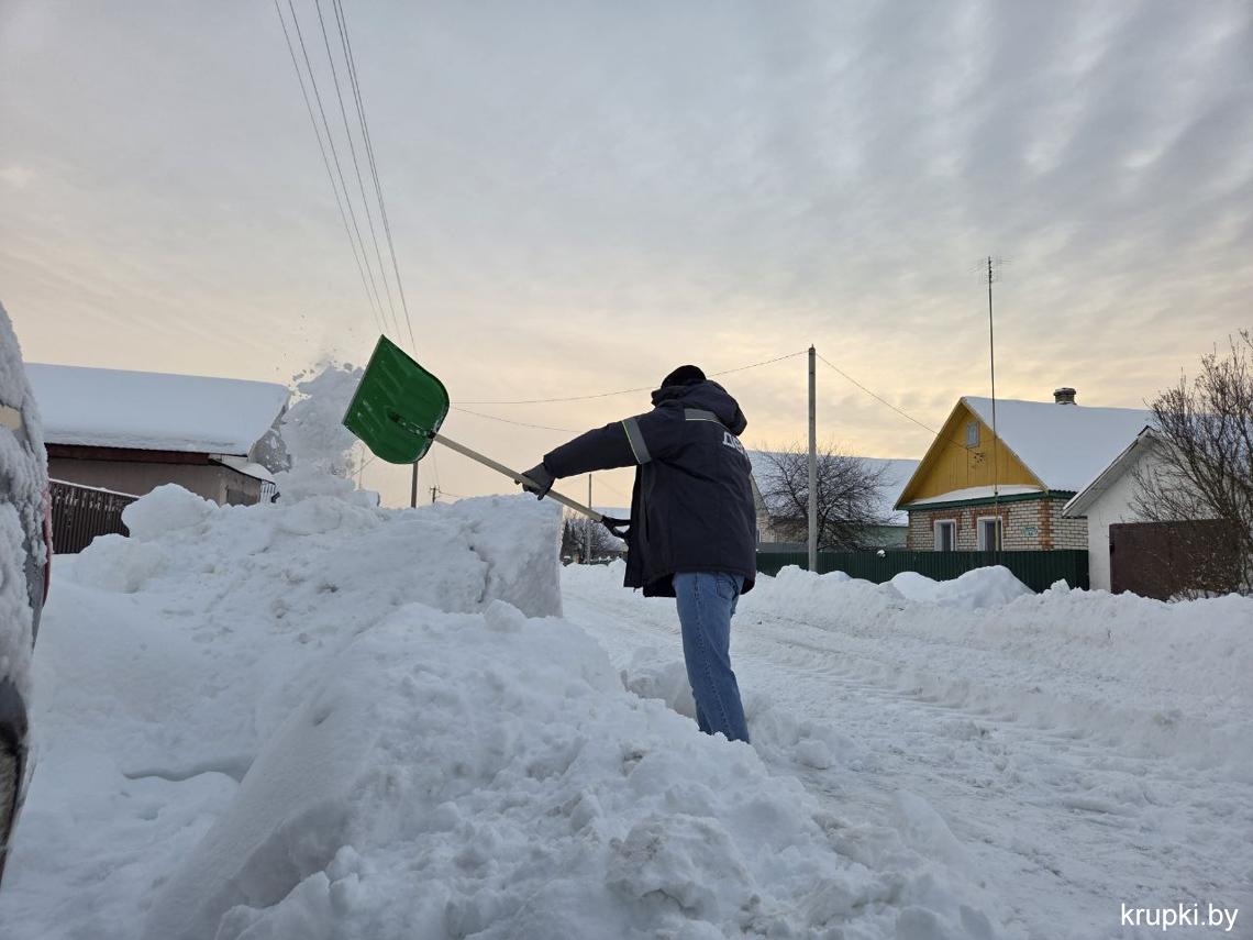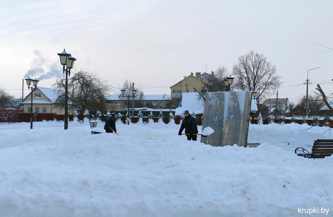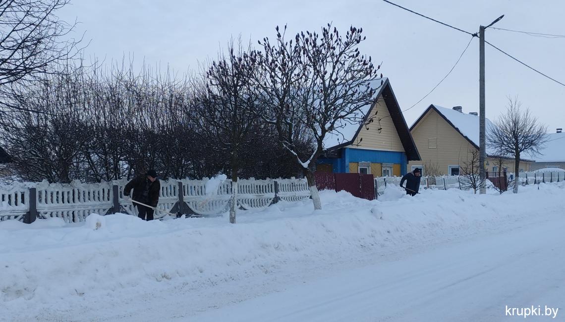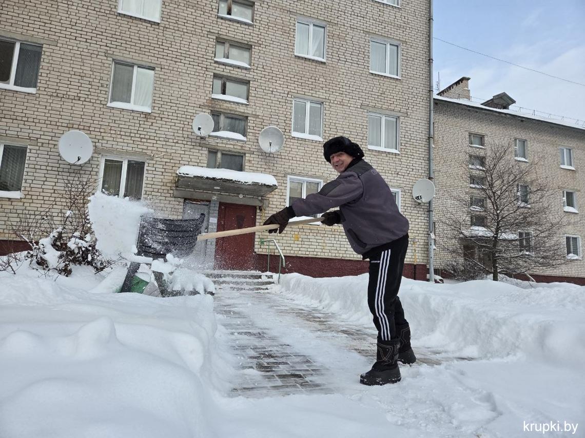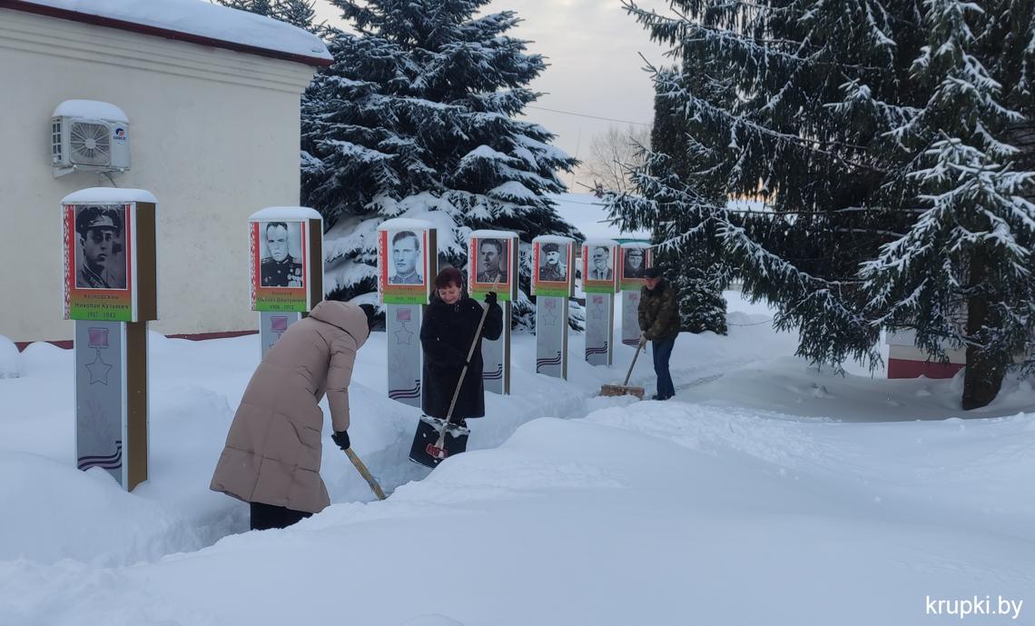 Крупская районная гимназия с самого утра включилась в уборку снега.