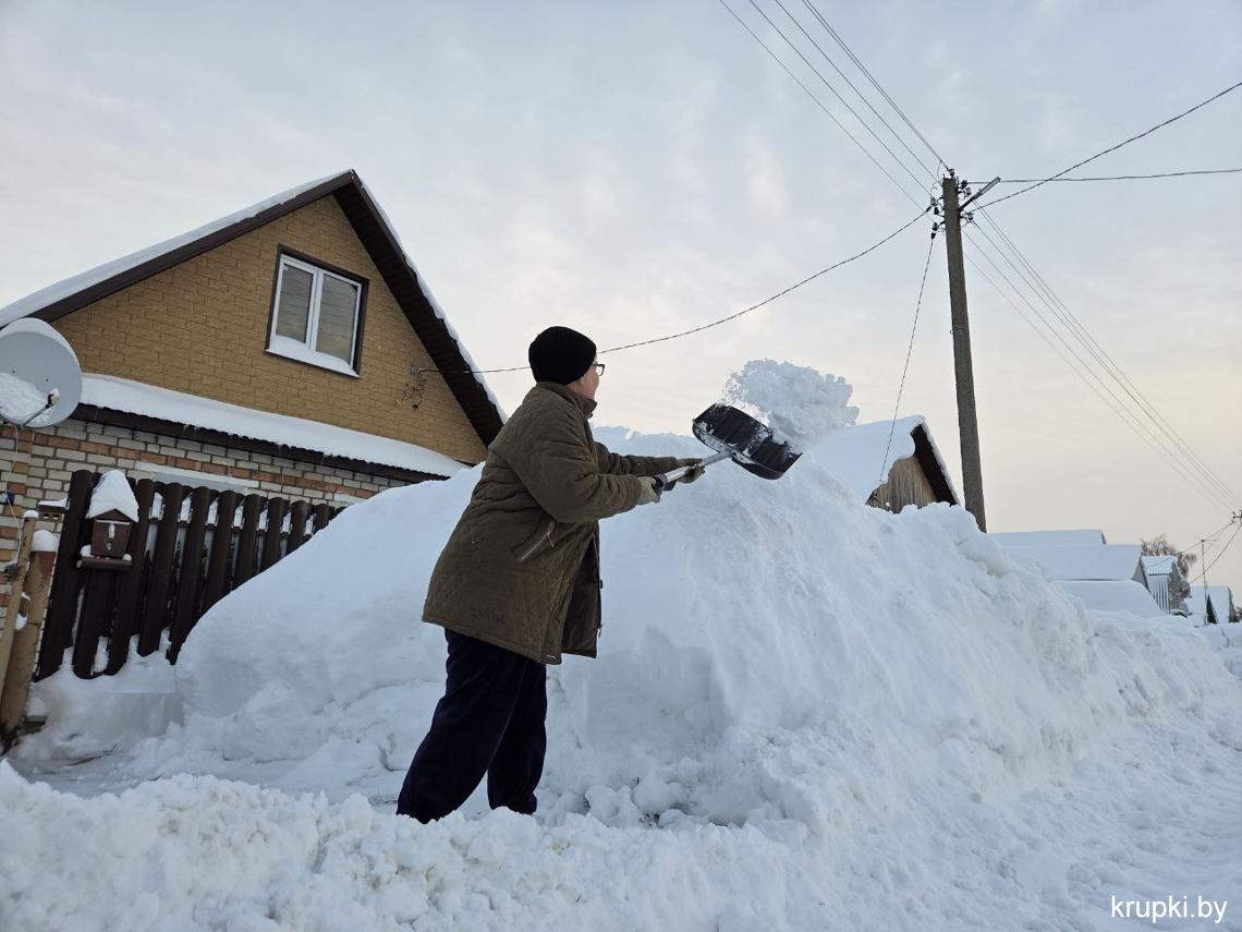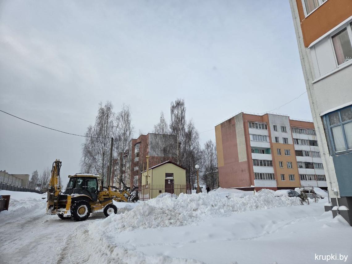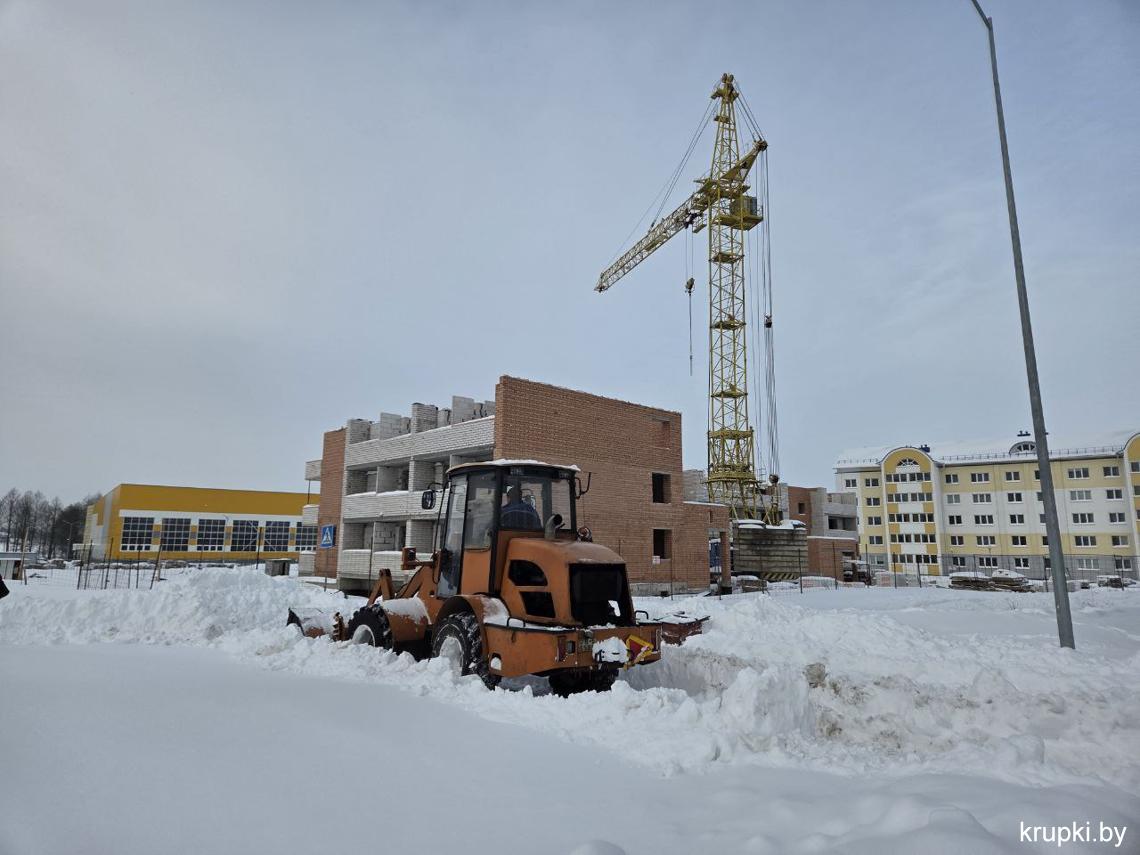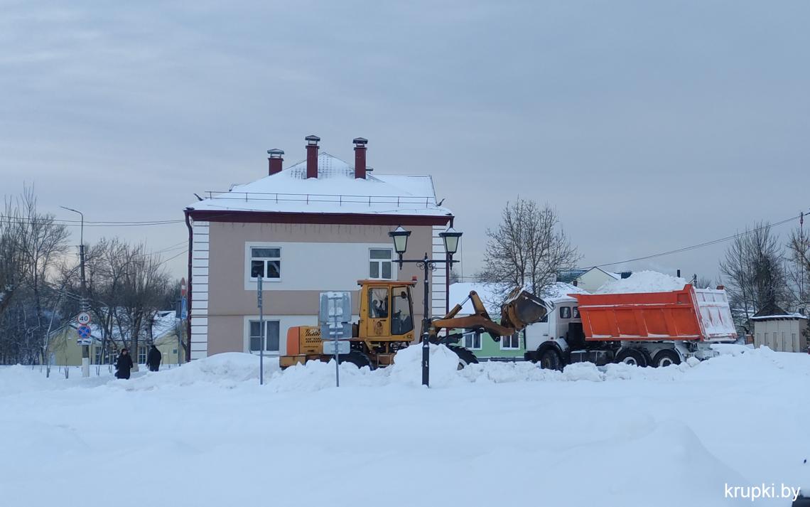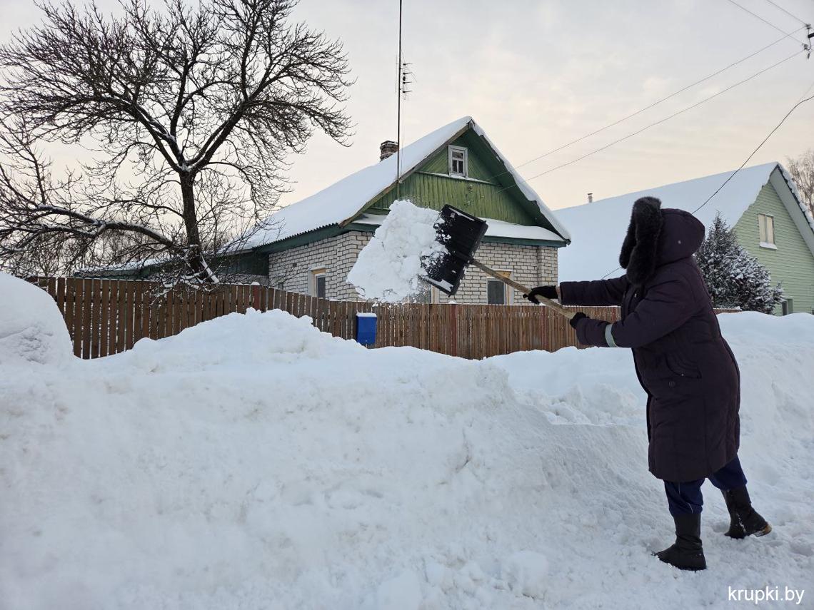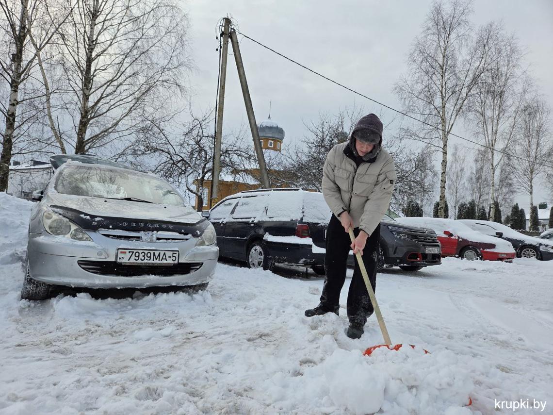 Крупская районная гимназия с самого утра включилась в уборку снега.