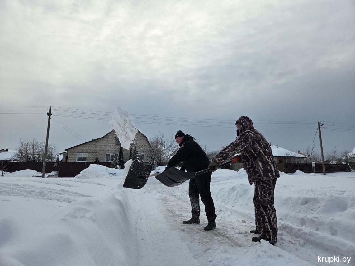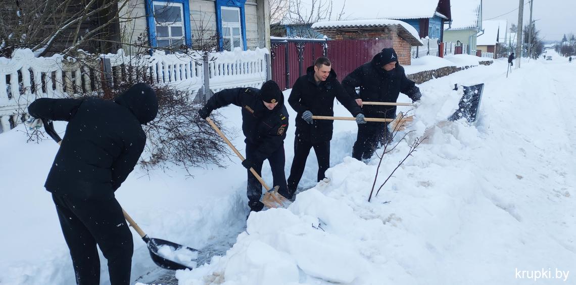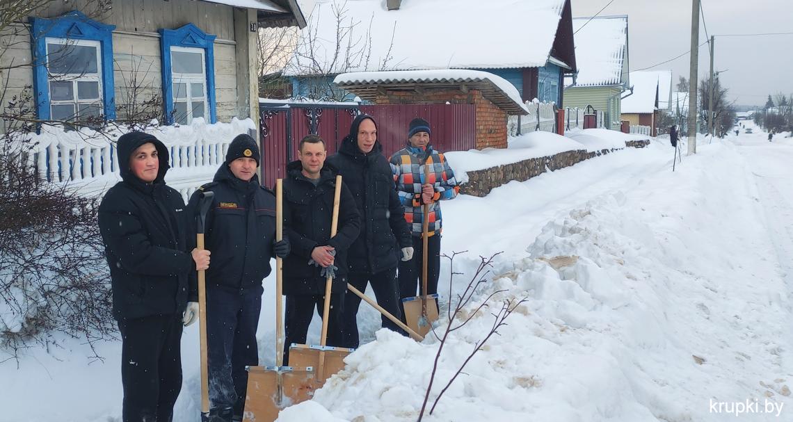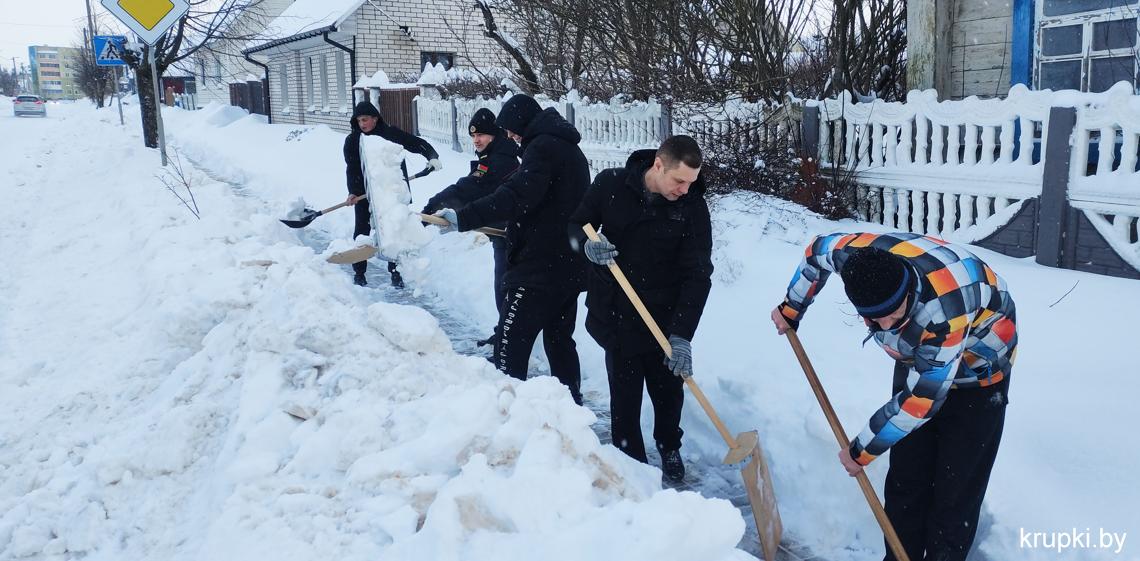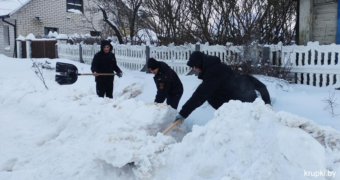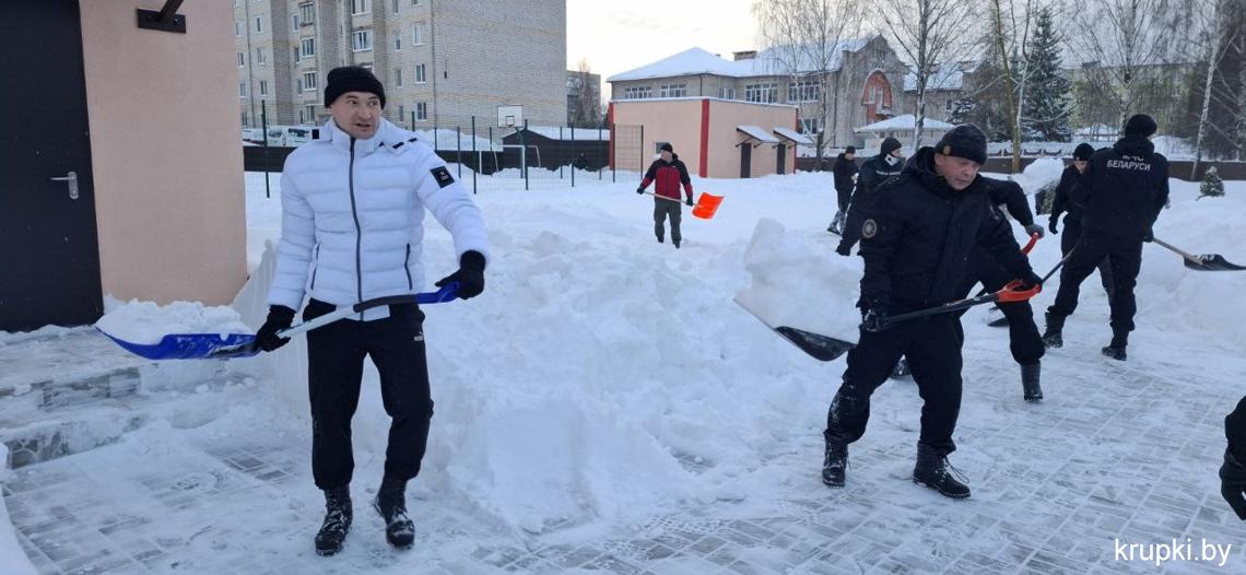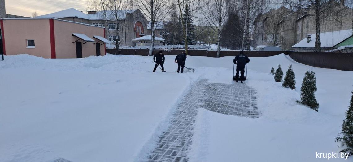 Спасатели также убирали снег на территории ПАСЧ-1 г. Крупки.