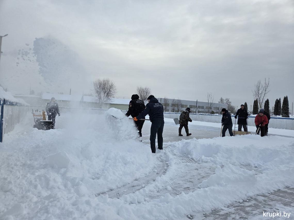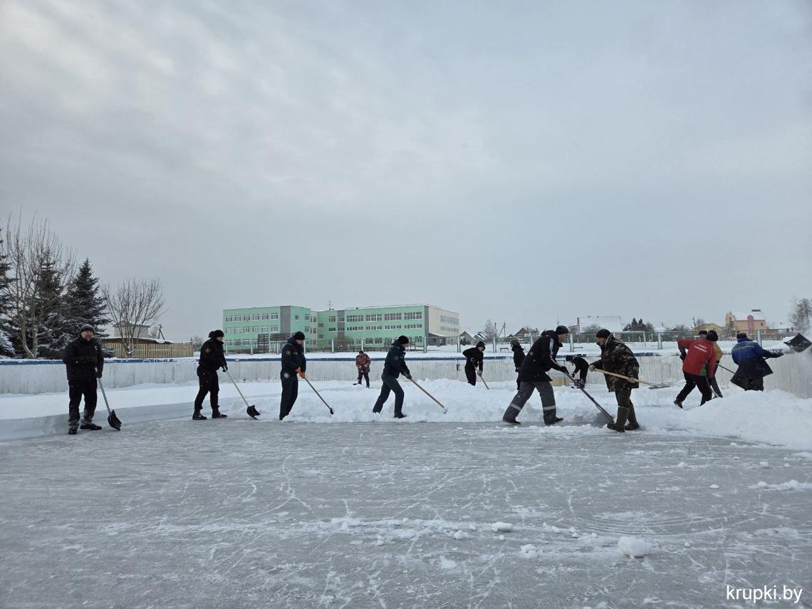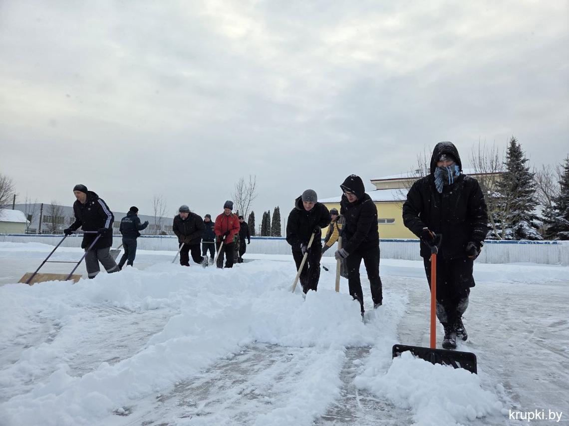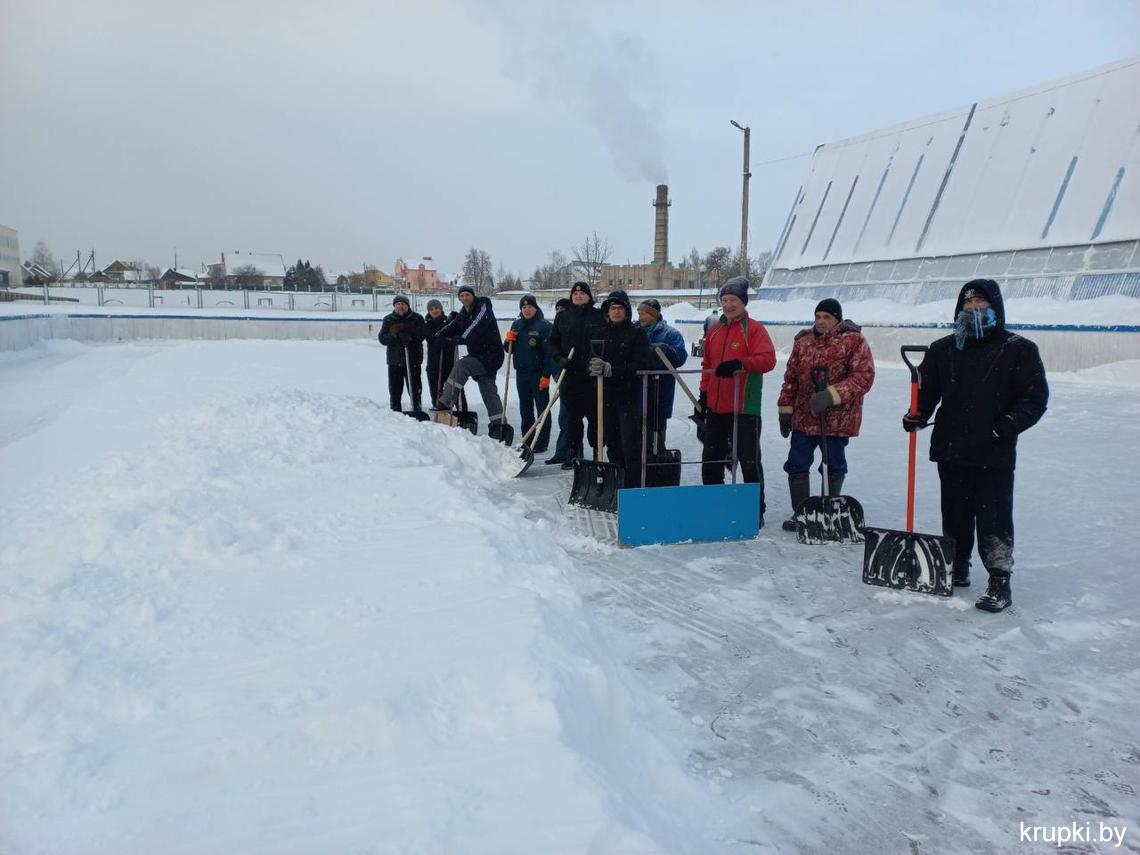 Сотрудники спортивной сферы и Крупского РОЧС тоже "вооружились" лопатами. Несмотря на сложные погодные условия спортивные объекты Крупского района работают в бесперебойном режиме. Занимайтесь спортом в комфортных условиях (кстати каток начал свою работу).