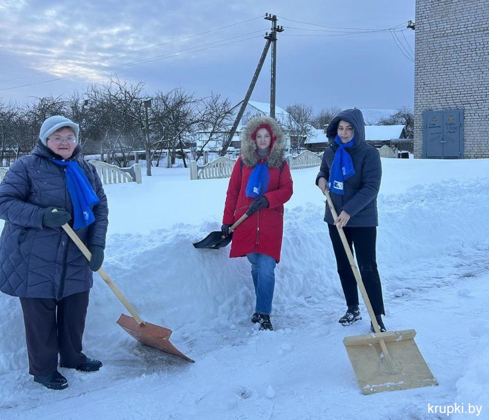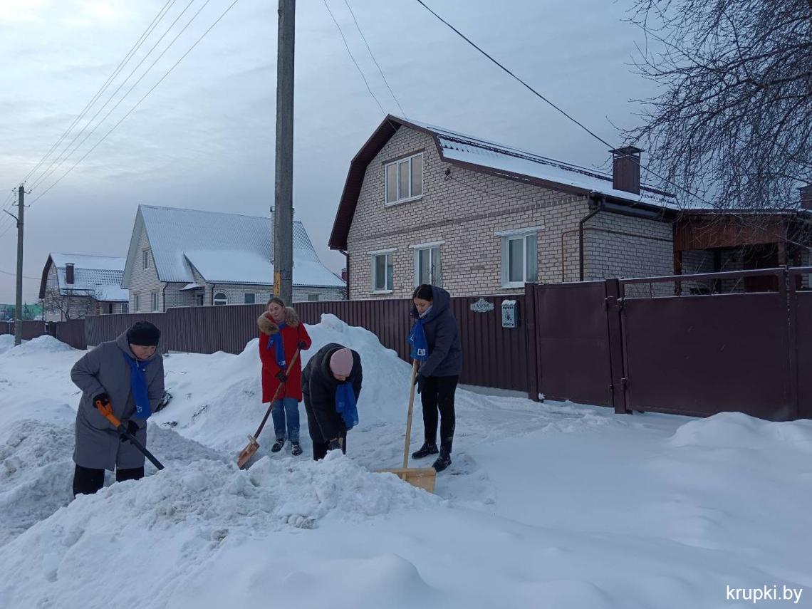 К работе активно подключились коллективы и общественные организации. Настоящим примером стали представители Белорусского союза женщин и работники городской средней школы №3. Они не ограничились расчисткой своих территорий и дружно отправились помогать ветеранам.