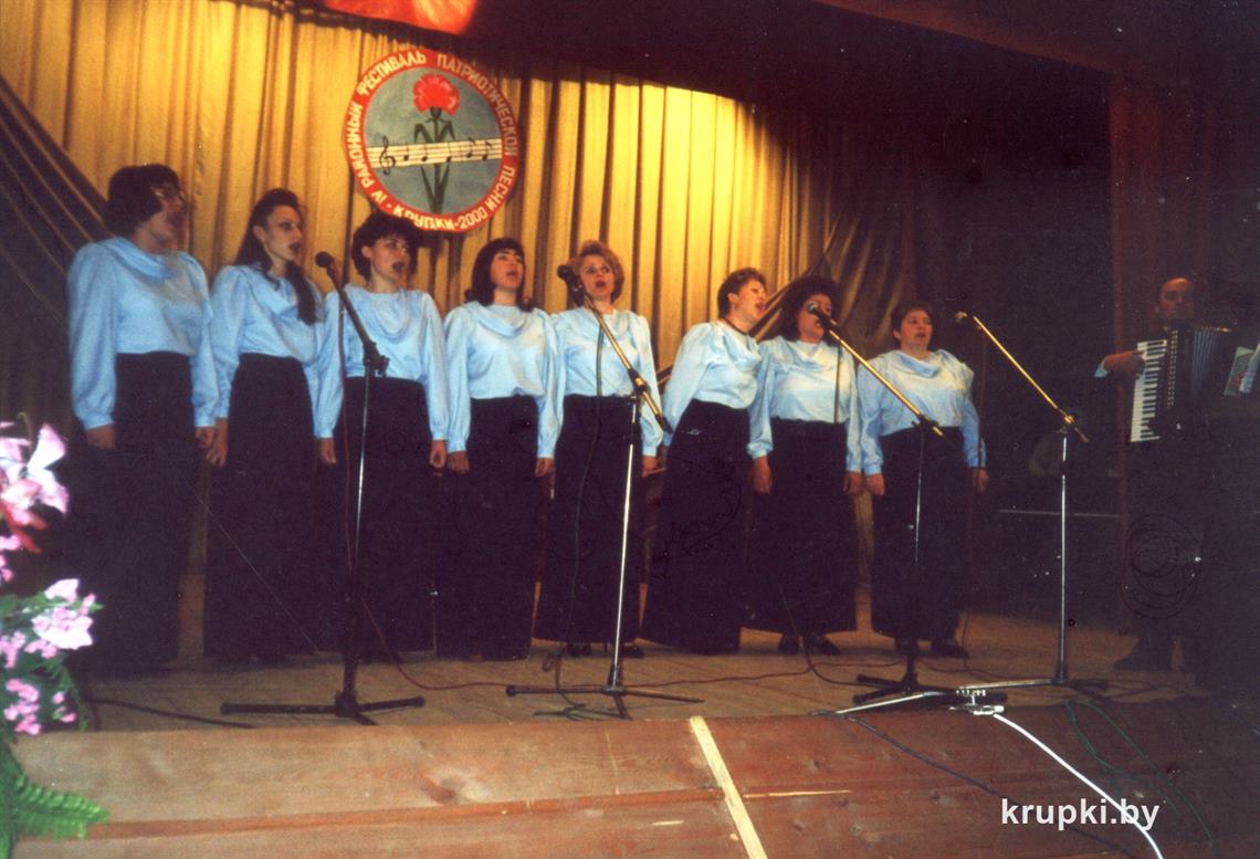 – Пасля заканчэння інстытута культуры па спецыяльнасці «Харавое дырыжыраванне» мы з мужам Юрыем прыехалі працаваць у Крупскі раён. З’явілася ідэя стварэння калектыву. Паступова ён папаўняўся новымі выканаўцамі. Да ансамбля далучаліся Тамара Каляда, Нона Бугаец, Ірына Гайдук, Наталля Кажамяка, Галіна Чарнышова, Антаніна Драніца… У рэпертуары ансамбля песні вядомых кампазітараў, беларускія і рускія народныя песні, песні рускіх і беларускіх аўтараў у стылізаванай апрацоўцы. Заўсёды з намі знакавая для калектыву песня «Сёння свята ў нашым краі, грай, гармонік, весялей» на словы Таццяны Каваленка, музыку Юрыя Сарокіна, – адзначае Маргарыта Еўсявіцкая. – У 2006 годзе нам прысуджана званне «народны» і 20 гадоў мы гэта званне падцвярджаем.