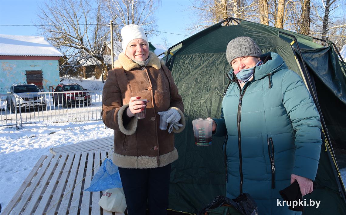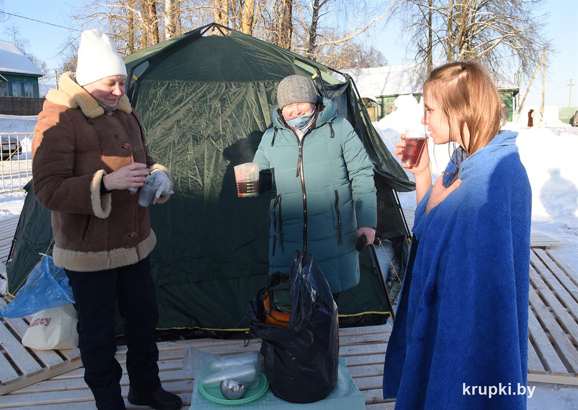 "Купальщикам" в Крещенской купели волонтеры Крупского ТЦСОН и Красного Креста предлагали горячий чай. Дежурили службы - ОСВОД, РОЧС, РОВД, скорая медицинская помощь.
