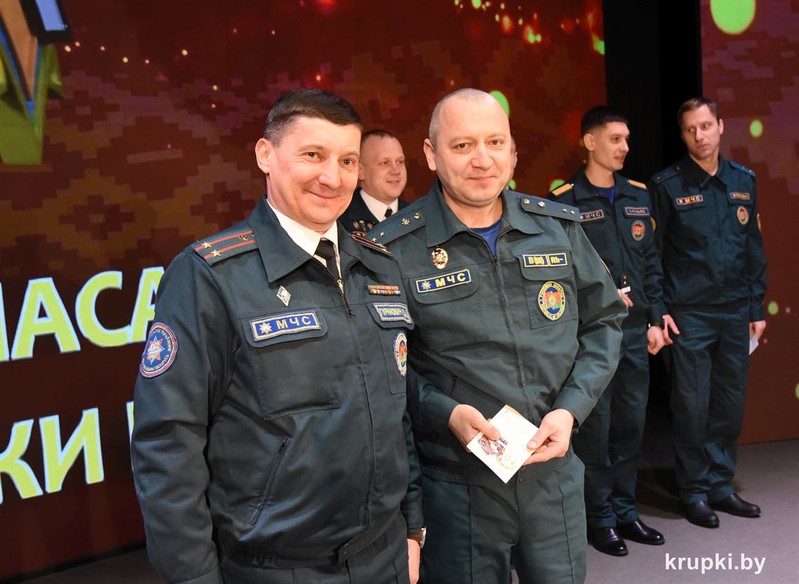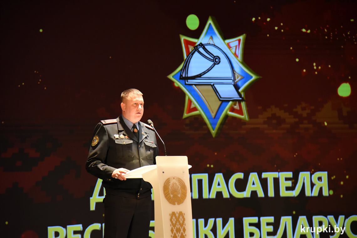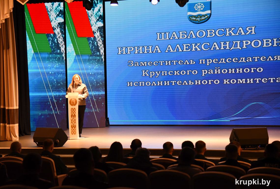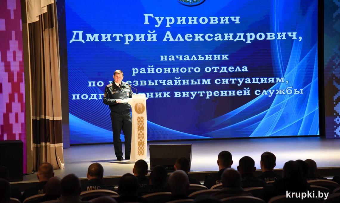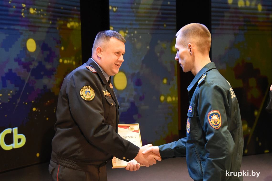 Слова поздравления и благодарности звучали со сцены от начальника Крупского РОЧС Дмитрия Гуриновича, начальника Крупского РОВД Игоря Познякова, начальника Крупского районного отдела Следственного комитета Александра Кожевко, начальника Крупского отдела Департамента охраны МВД Андрея Комарова.