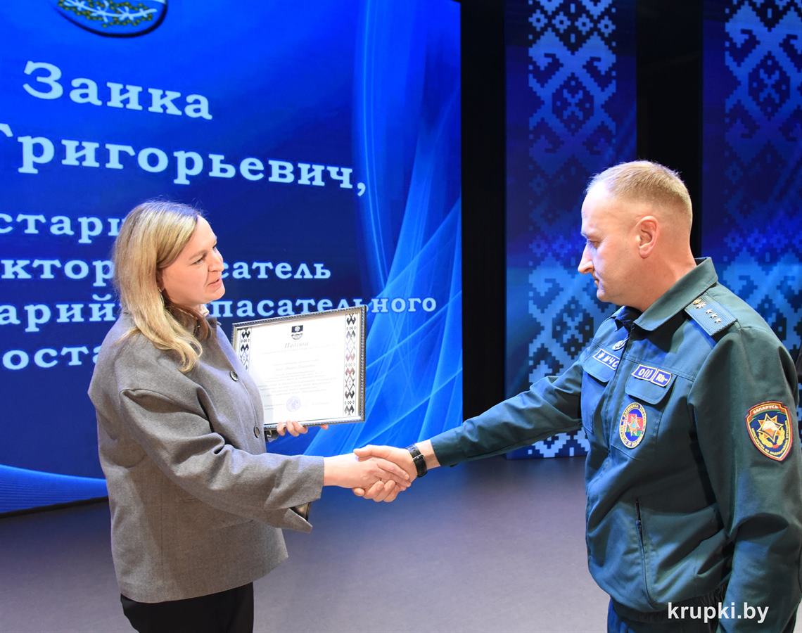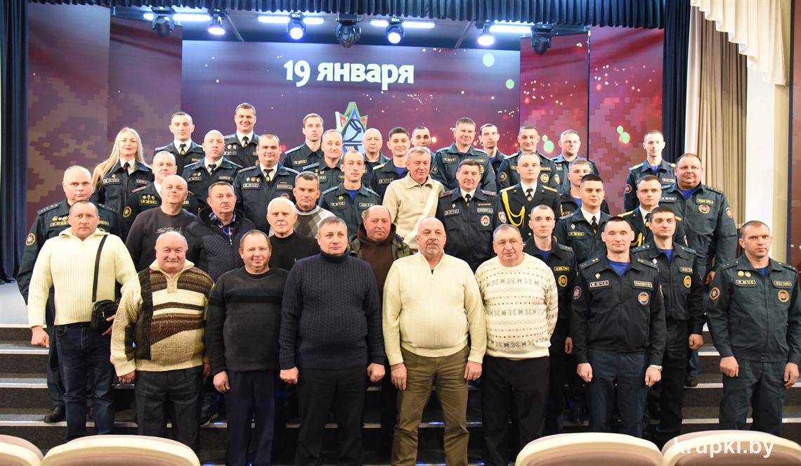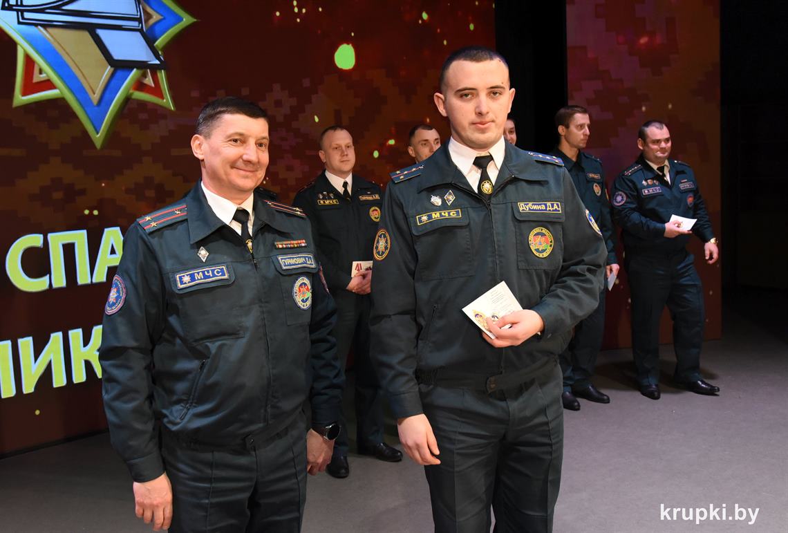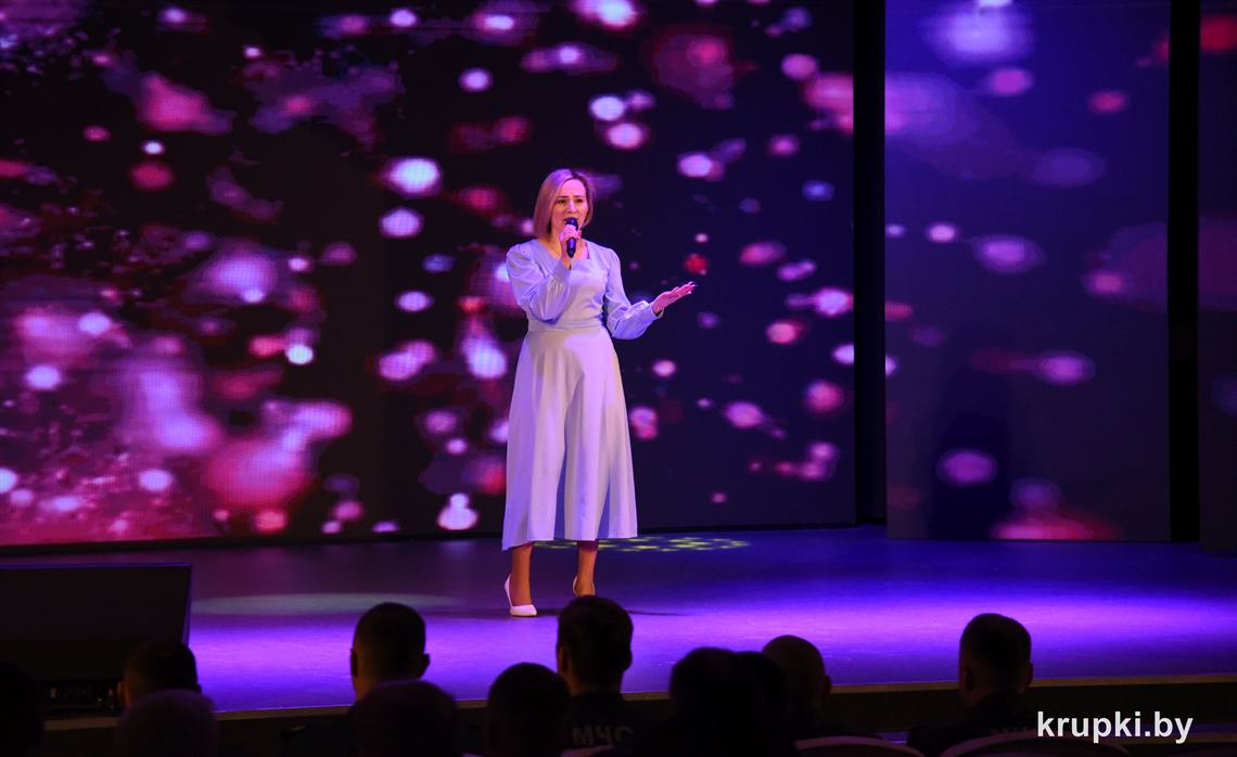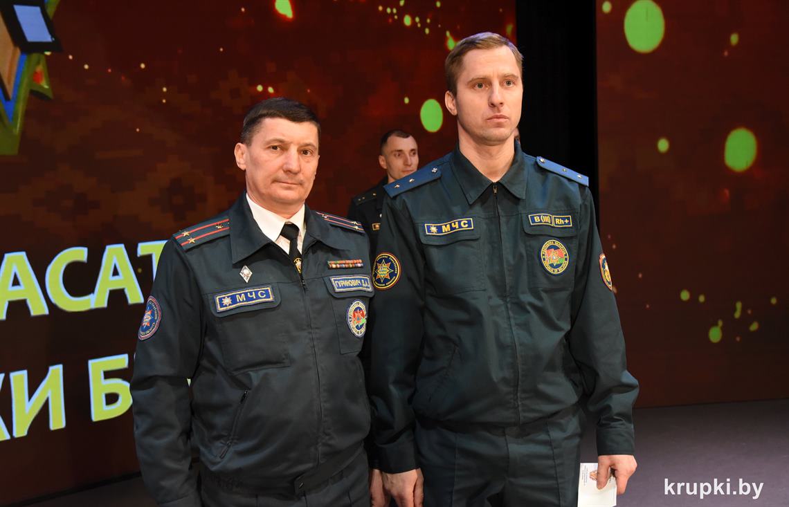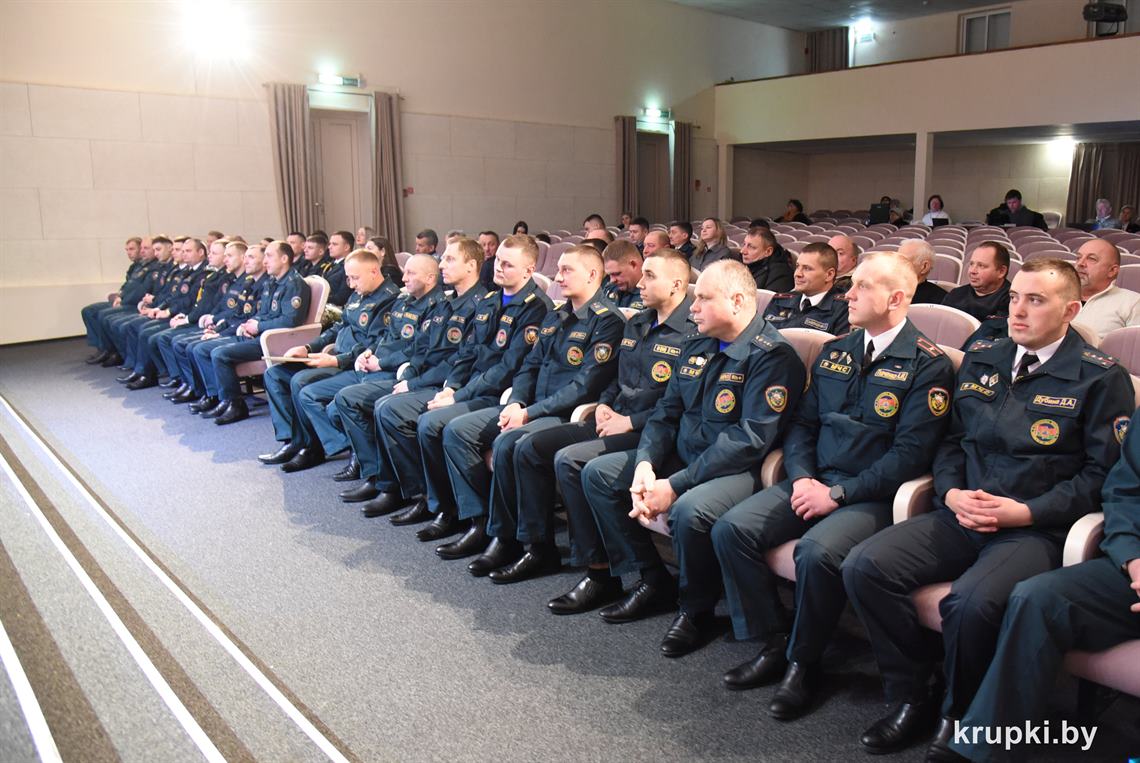 Слова поздравления и благодарности звучали со сцены от начальника Крупского РОЧС Дмитрия Гуриновича, начальника Крупского РОВД Игоря Познякова, начальника Крупского районного отдела Следственного комитета Александра Кожевко, начальника Крупского отдела Департамента охраны МВД Андрея Комарова.