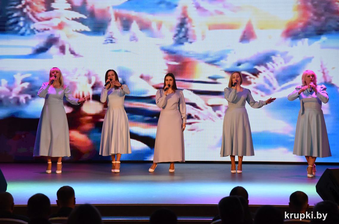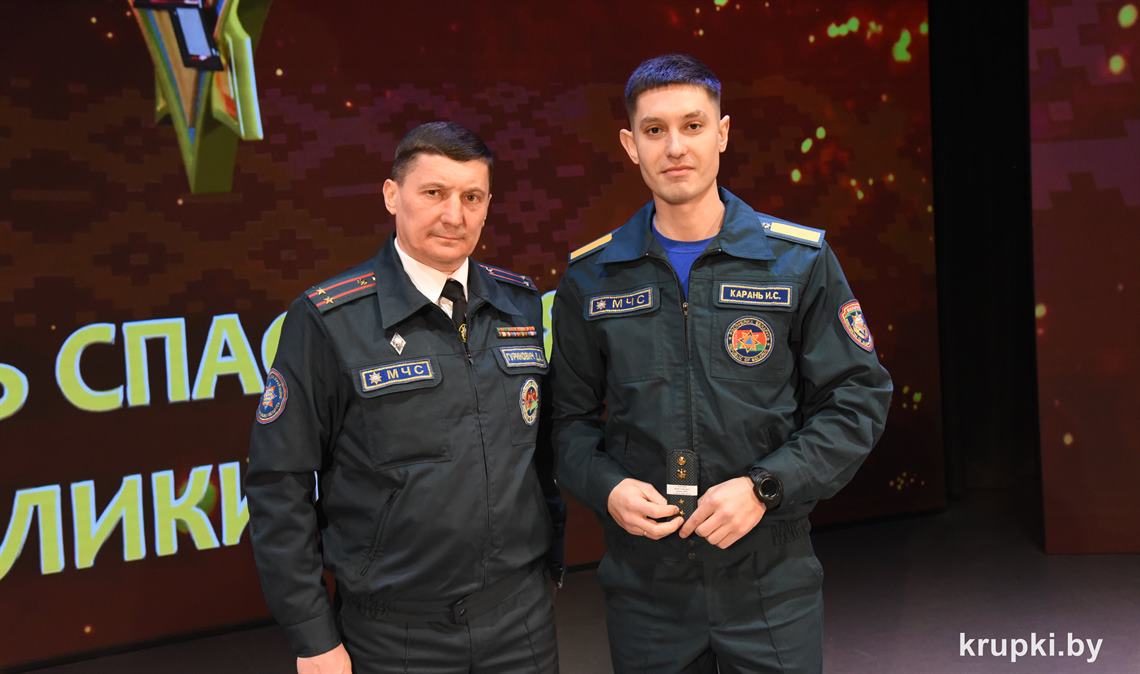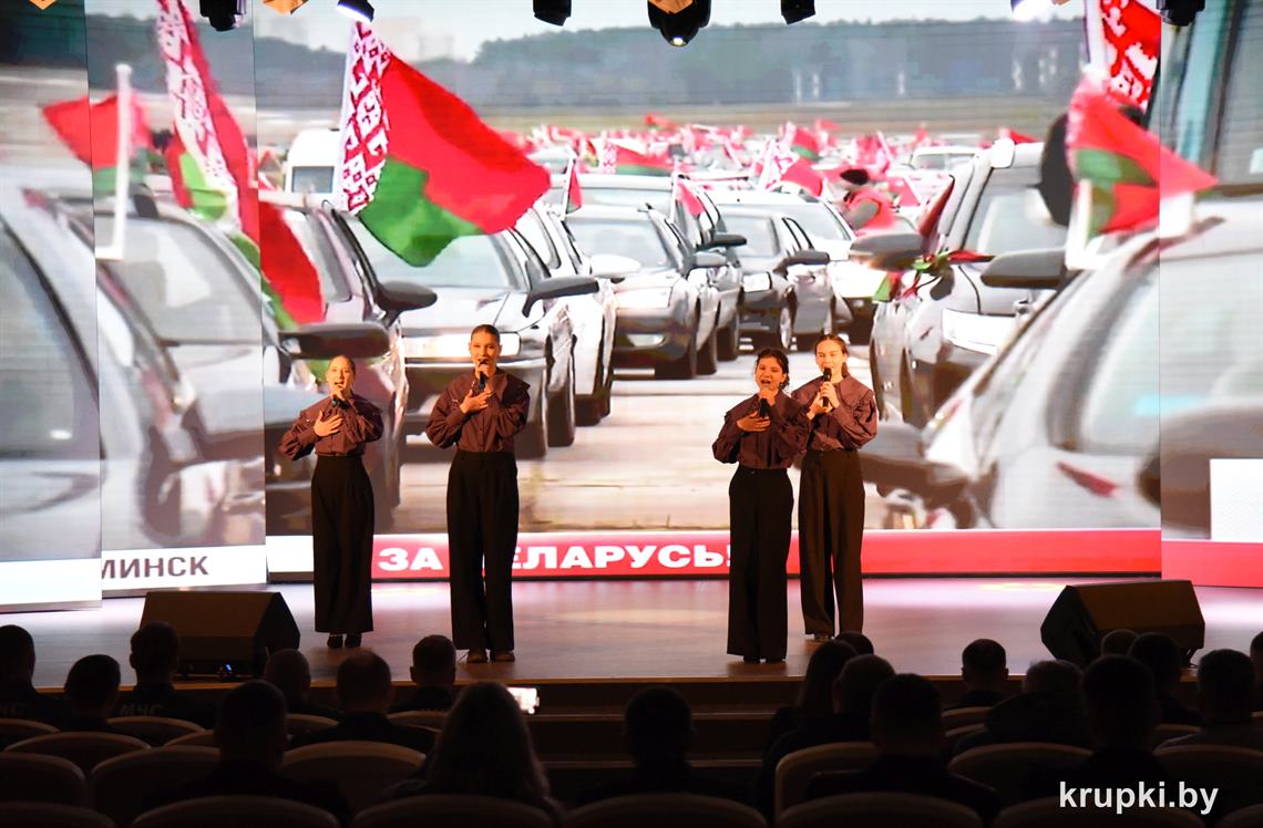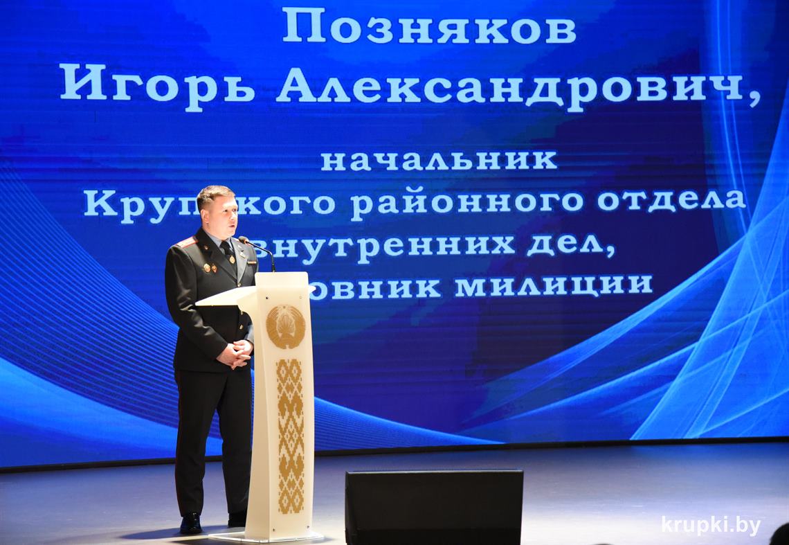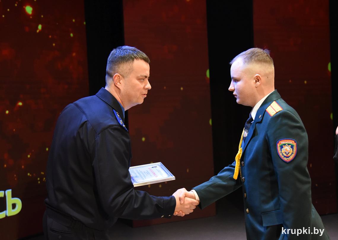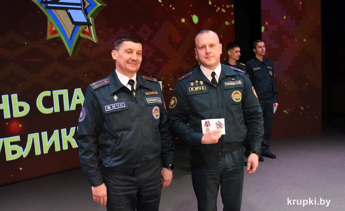 Слова поздравления и благодарности звучали со сцены от начальника Крупского РОЧС Дмитрия Гуриновича, начальника Крупского РОВД Игоря Познякова, начальника Крупского районного отдела Следственного комитета Александра Кожевко, начальника Крупского отдела Департамента охраны МВД Андрея Комарова.