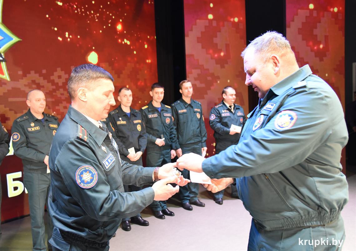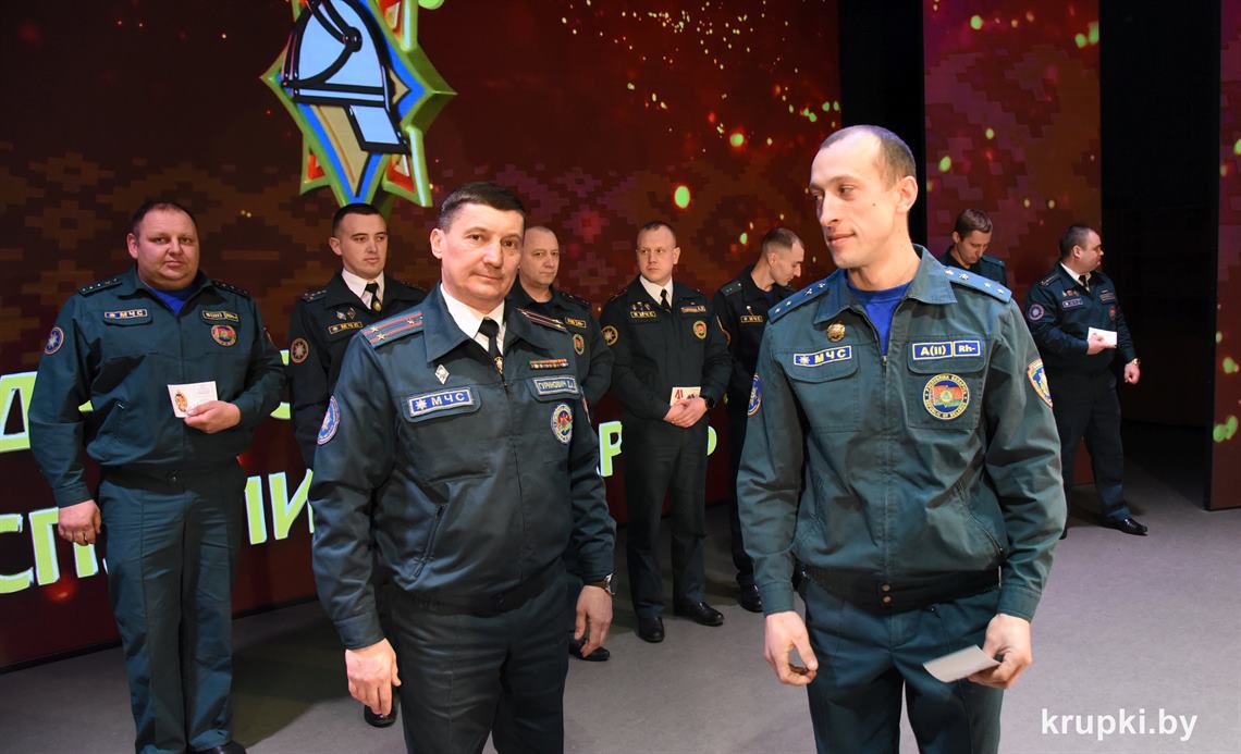 За доблестную службу, за образцовое выполнение служебных обязанностей и достижение высоких результатов в служебной деятельности, а самое главное – за профессионализм и грамотные действия по спасению жизни людей лучшим спасателям Крупского гарнизона были вручены награды.