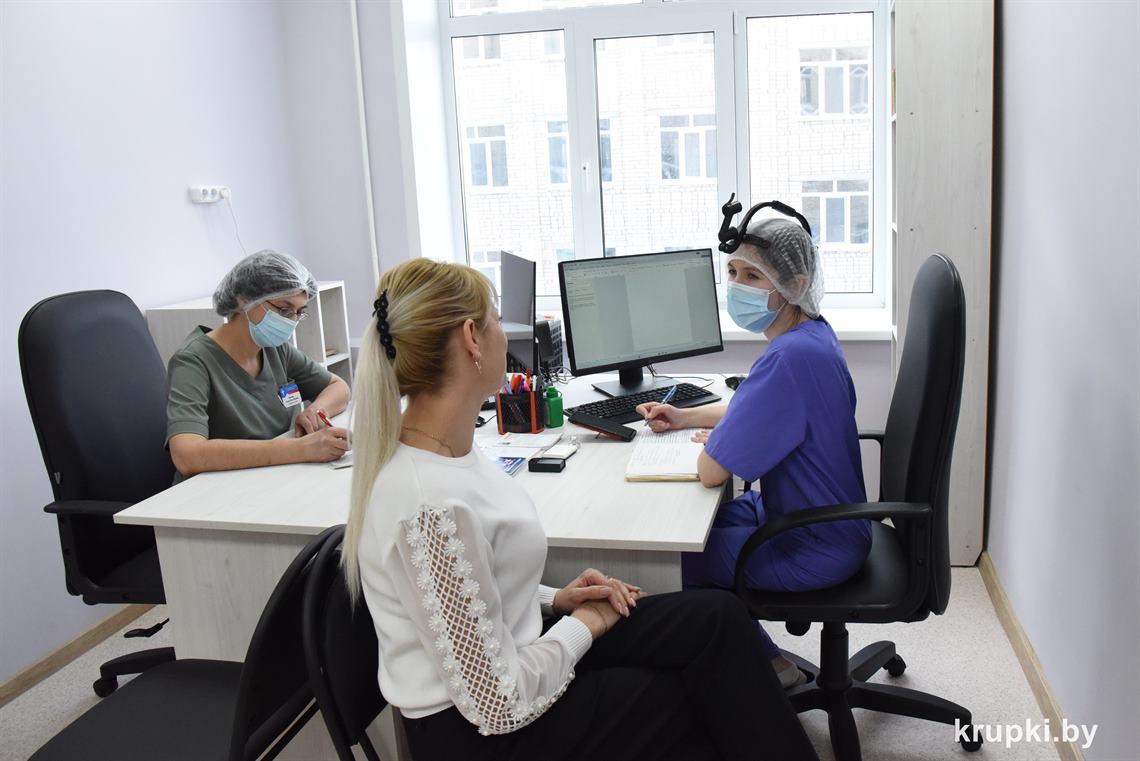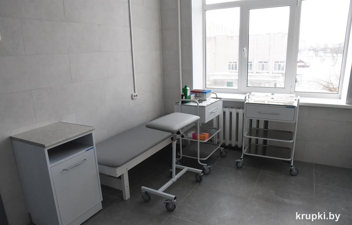 – Текущий ремонт на третьем этаже произведен с заменой сантехнического оборудования, мебели, выполнена покраска стен, потолков, залито напольное покрытие. Перепрофилировали согласно требованиям кабинеты. Теперь некоторые разделены на две части, чтобы врач общей практики вел прием с участием помощника врача и медицинской сестры согласно санэпидрежиму. Во все кабинеты поставлены компьютеры. Автоматизированы рабочие места для всех врачей-специалистов, что позволит нам работать в единой электронной системе и вести электронные медицинские карты, – разъясняет в ходе посещения кабинетов главный врач Крупской ЦРБ Екатерина Леонович. – Закуплено новое медицинское оборудование, мебель. Для более комфортабельных условий сделали гардероб для медработников режимных кабинетов. Лестничные марши обновлены с 1-го по 4-ый этаж. Все оборудовано и для людей с ограниченными возможностями.