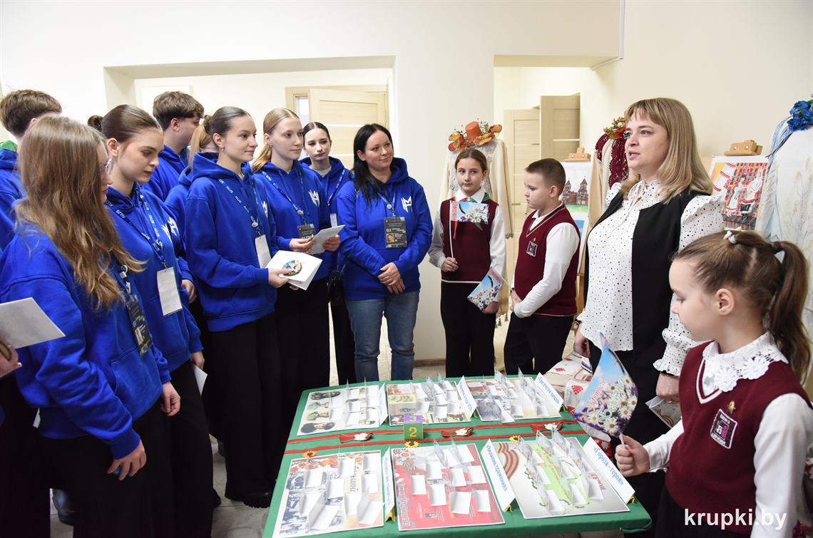 Тепло и радушно встречали участников Звездного похода в Крупском ЦДТ. Здесь учащиеся и педагоги района представили панораму опыта работы в патриотическом воспитании. Филологи познакомились с проектами «Их подвиг в памяти потомком», «Историю Крупщины сохраняя в альбоме родного края», информационно-методическим альманахом «Памятная книга Крупского района», спектаклем образцового театрального коллектива «Дебют» «Анна Франк», интерактивной игрой «Святая память».