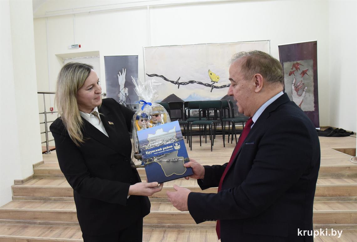 Памятный подарок Ирина Шабловская вручила декану филологического факультета Василию Стариченку, который является уроженцем Крупского района.