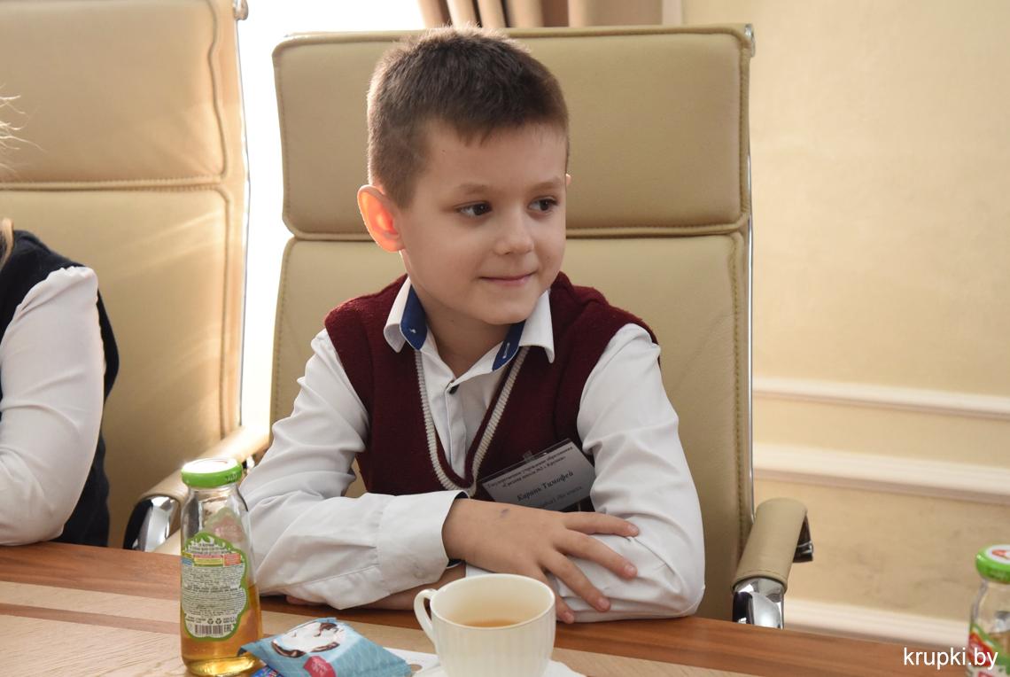 Вскоре инициатива перешла к юным гостям – у них созрел целый ворох вопросов к главе района. Спектр интересов был невероятно широк: от воспоминаний о первой учительнице до самого любимого уголка Крупок.