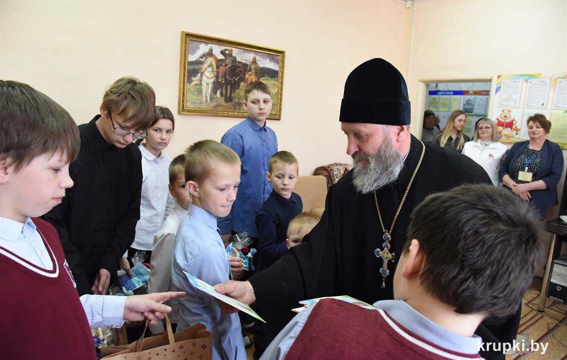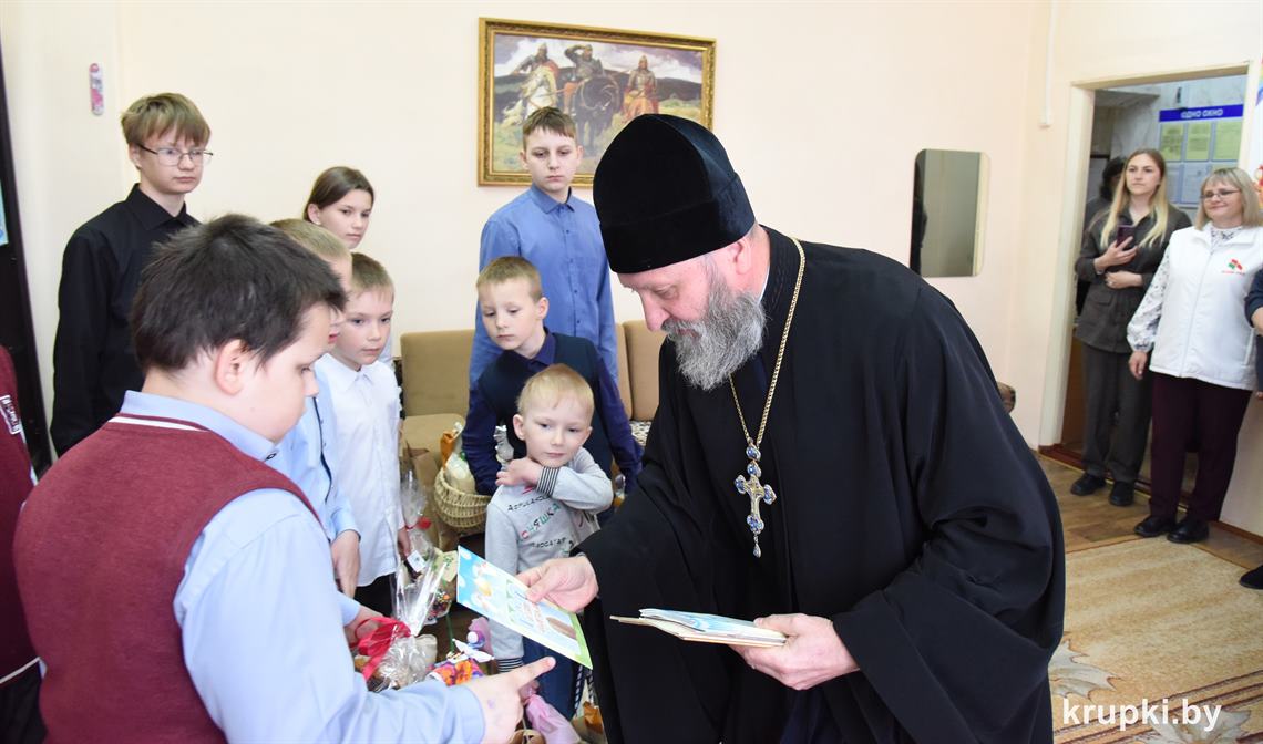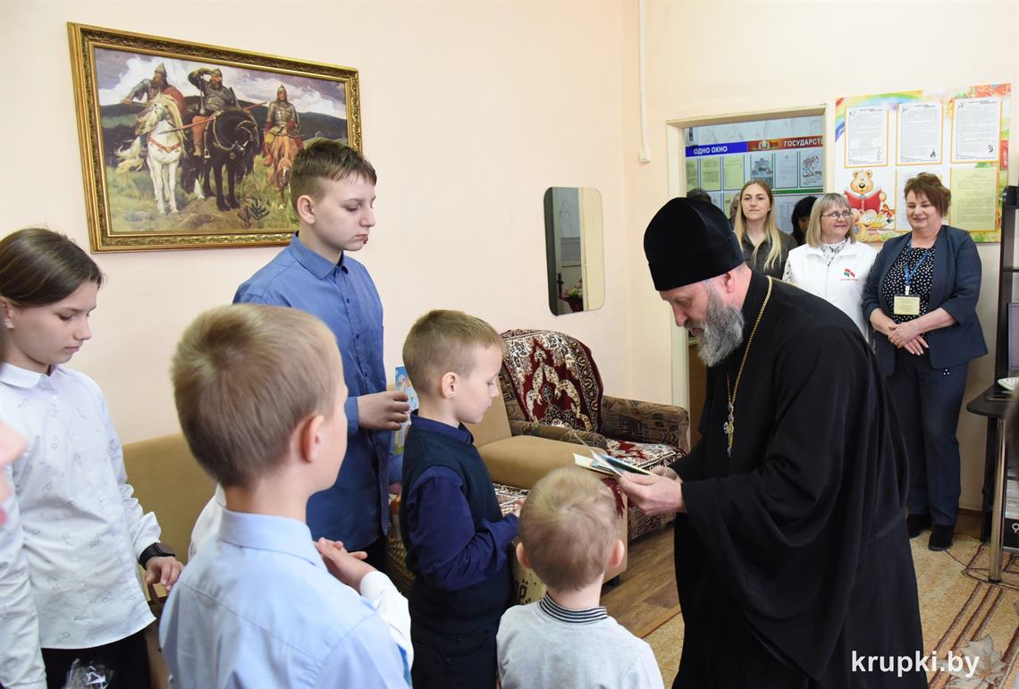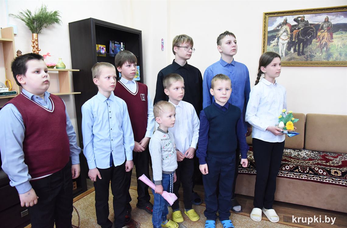 Сегодня в приюте находятся девять ребят. Самому старшему, Андрею, – четырнадцать лет, а самому младшему, Даниилу, – всего пять. Председатель райисполкома познакомился с каждым ребенком, поздравил с Великим праздником и вручил подарки. О глубоком духовном смысле Пасхи рассказал благочинный церковного округа протоиерей Георгий Тюхлов, подаривший детям книги.