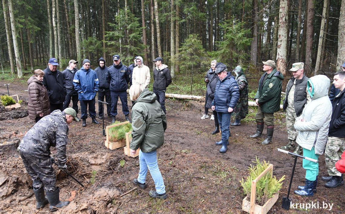 Технологию посадки рассказал и провел инструктаж начальник отдела лесного хозяйства и лесовосстановления Крупского лесхоза Сергей Строцкий.