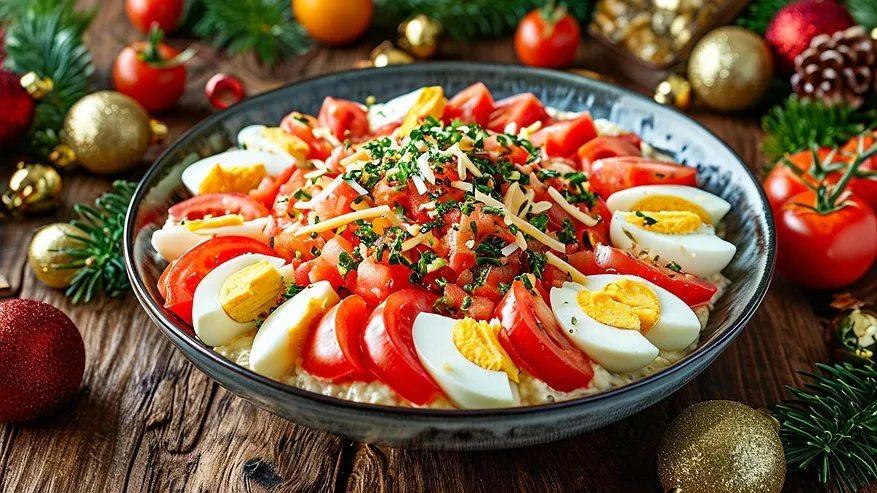 Секрет – в четкой последовательности и подготовке. Помидоры режем мелкими кубиками и обязательно даем стечь лишнему соку на дуршлаге или сите – так салат не «поплывет». Крабовые палочки мелко нарезаем или разбираем на тонкие волокна. Яйца и сыр натираем на средней терке. Теперь собираем слои на широком плоском блюде, слегка промазывая каждый майонезом. Первым идет слой помидоров. Вторым – половина нарезанных крабовых палочек. Третьим – весь натертый копченый сыр. Четвертым – яйца, которые стоит присолить и поперчить по вкусу прямо в слое. Завершаем всё оставшимися крабовыми палочками, создавая «пушистую» верхушку.