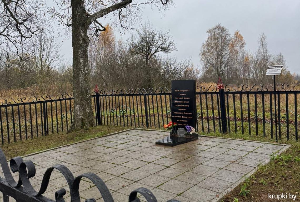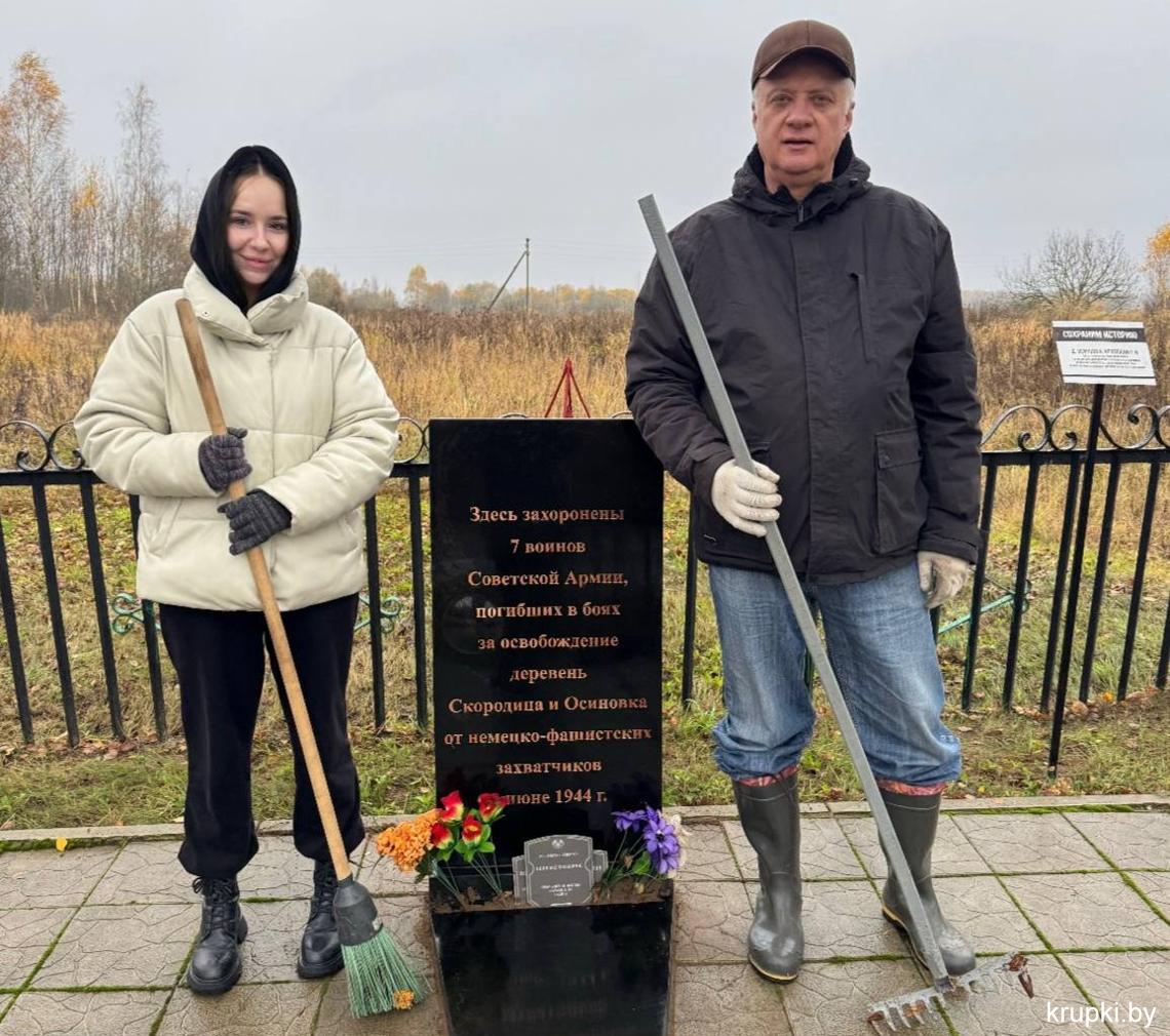 Прокуратура Крупского района во главе с прокурором Владимиром Голенковым благоустраивают памятное место в деревне Осиновка - братскую могилу, где покоятся семь воинов Советской Армии. Они пали в июне 1944 года, освобождая деревни Скородица и Осиновка от немецко-фашистских захватчиков.