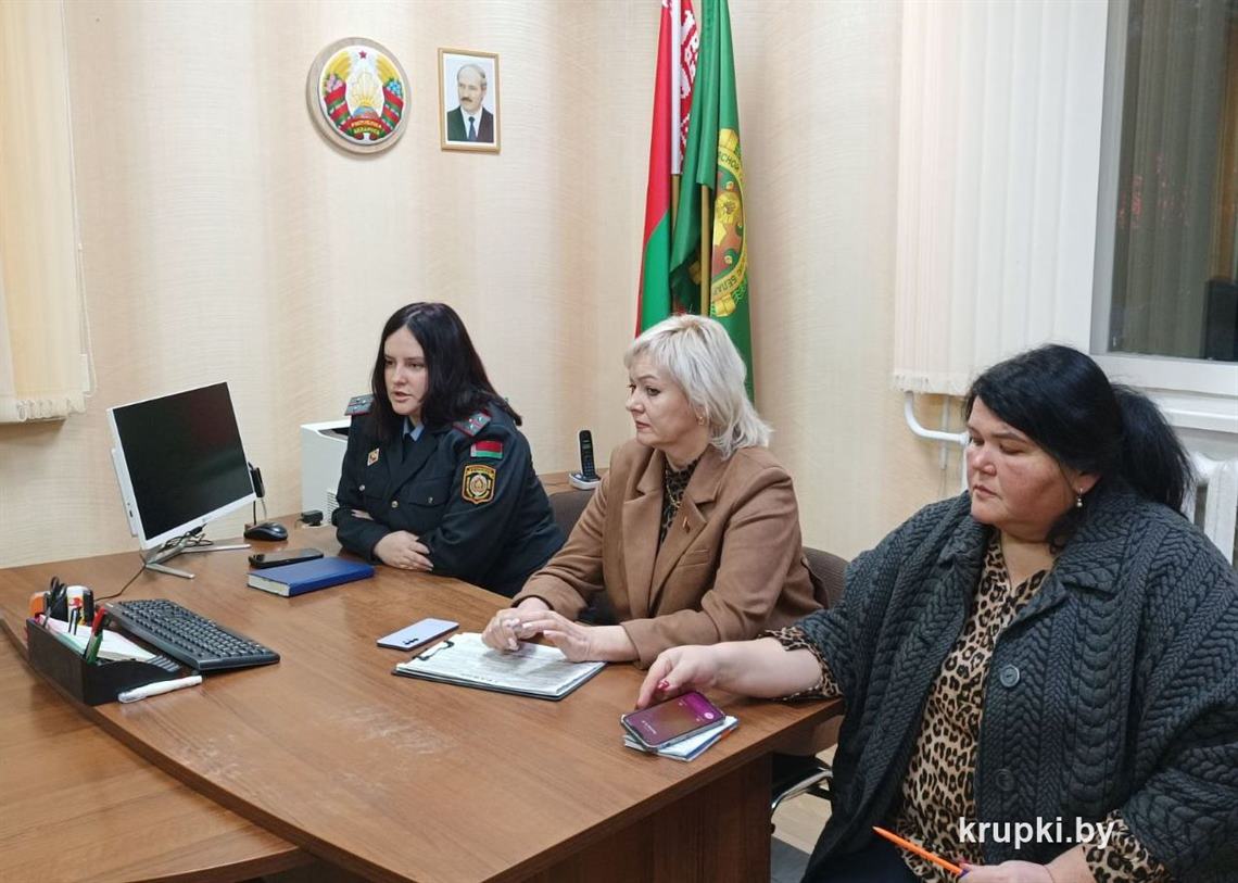 В составе группы - депутат Минского областного Совета депутатов, районного Совета депутатов Ирина Потылкина, оперуполномоченный отделения уголовного розыска Крупского РОВД Юлия Красовская.