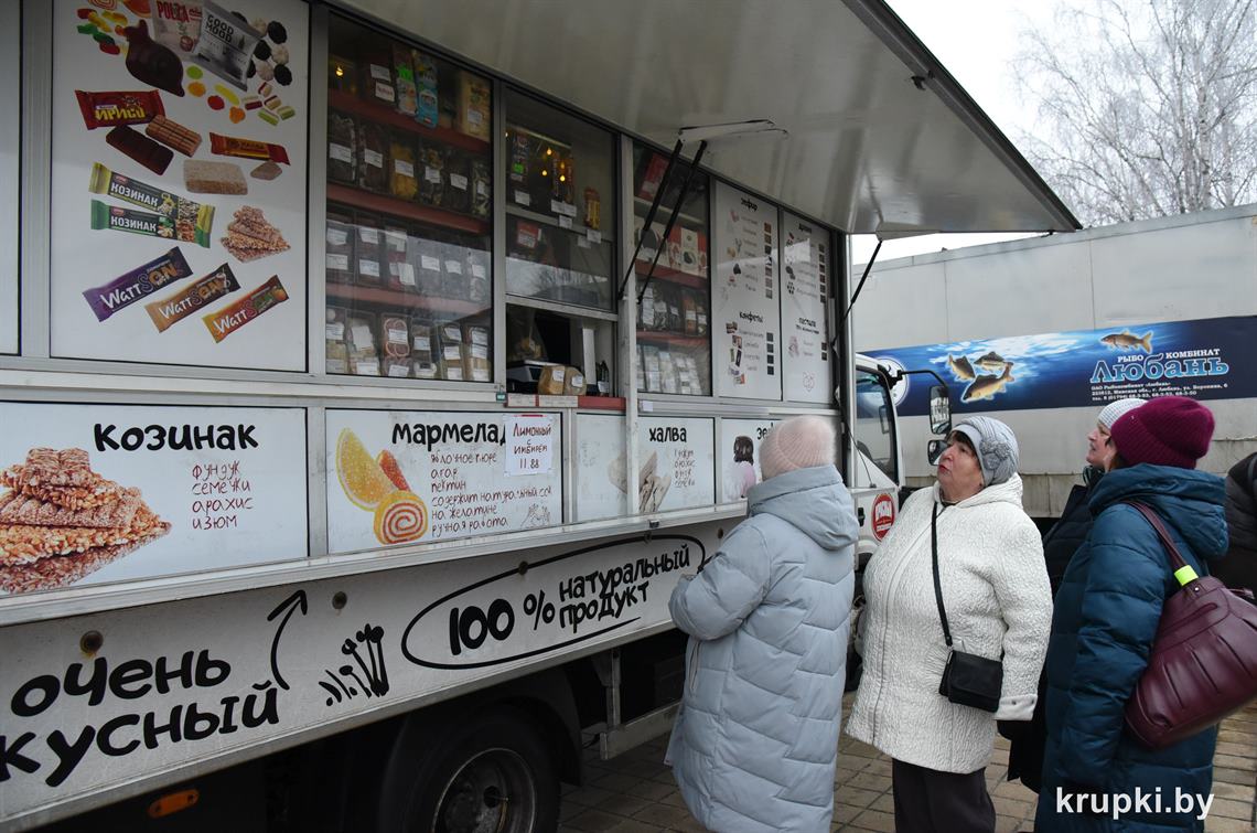 Торговые палатки предлагают покупателям сырную продукцию, живую рыбу, сало и копчености, восточные сладости, зефир и мармелад от «Красного пищевика», восточные сладости, текстиль, одежду, сувениры.