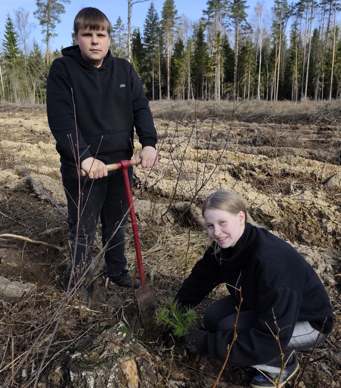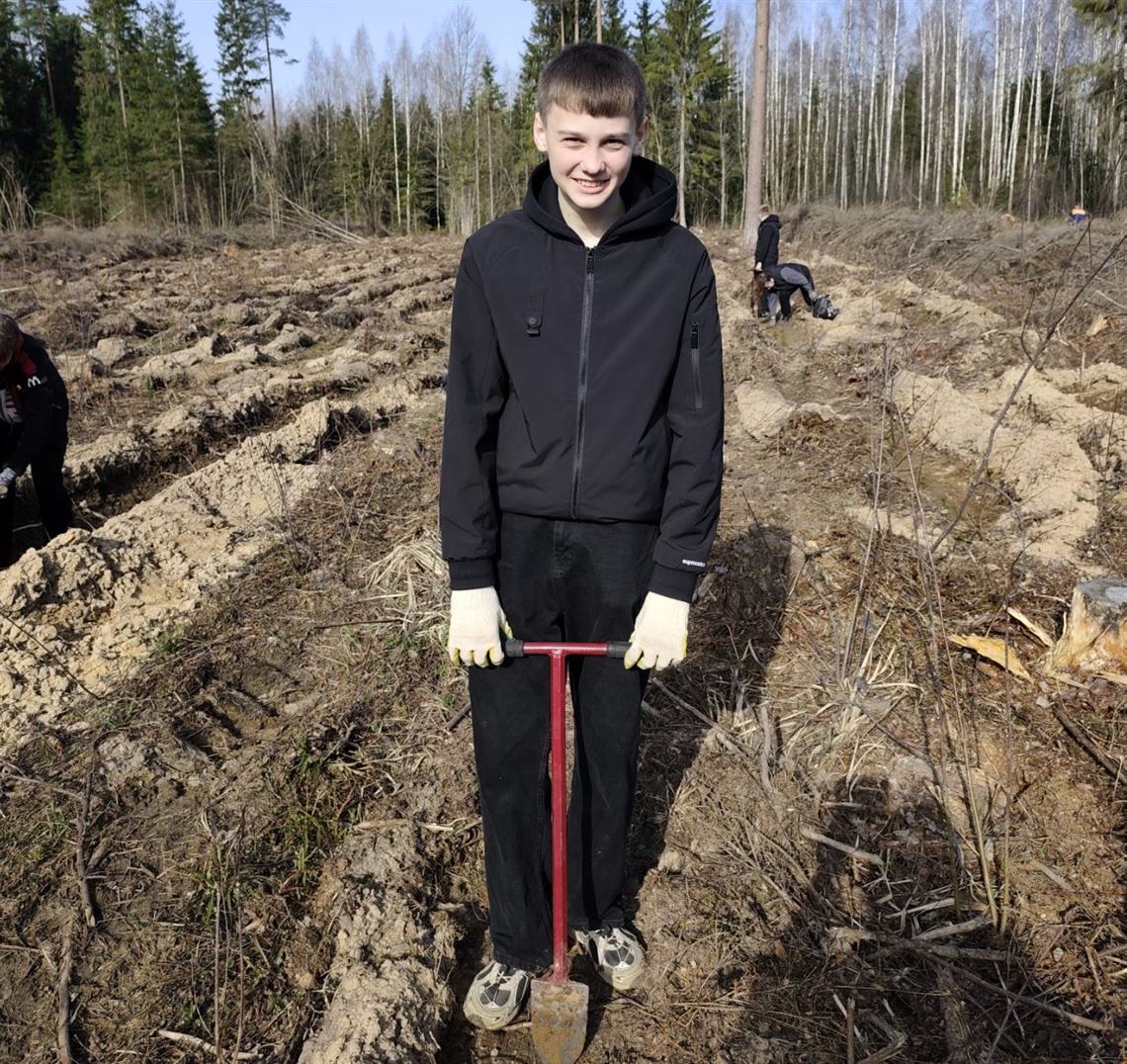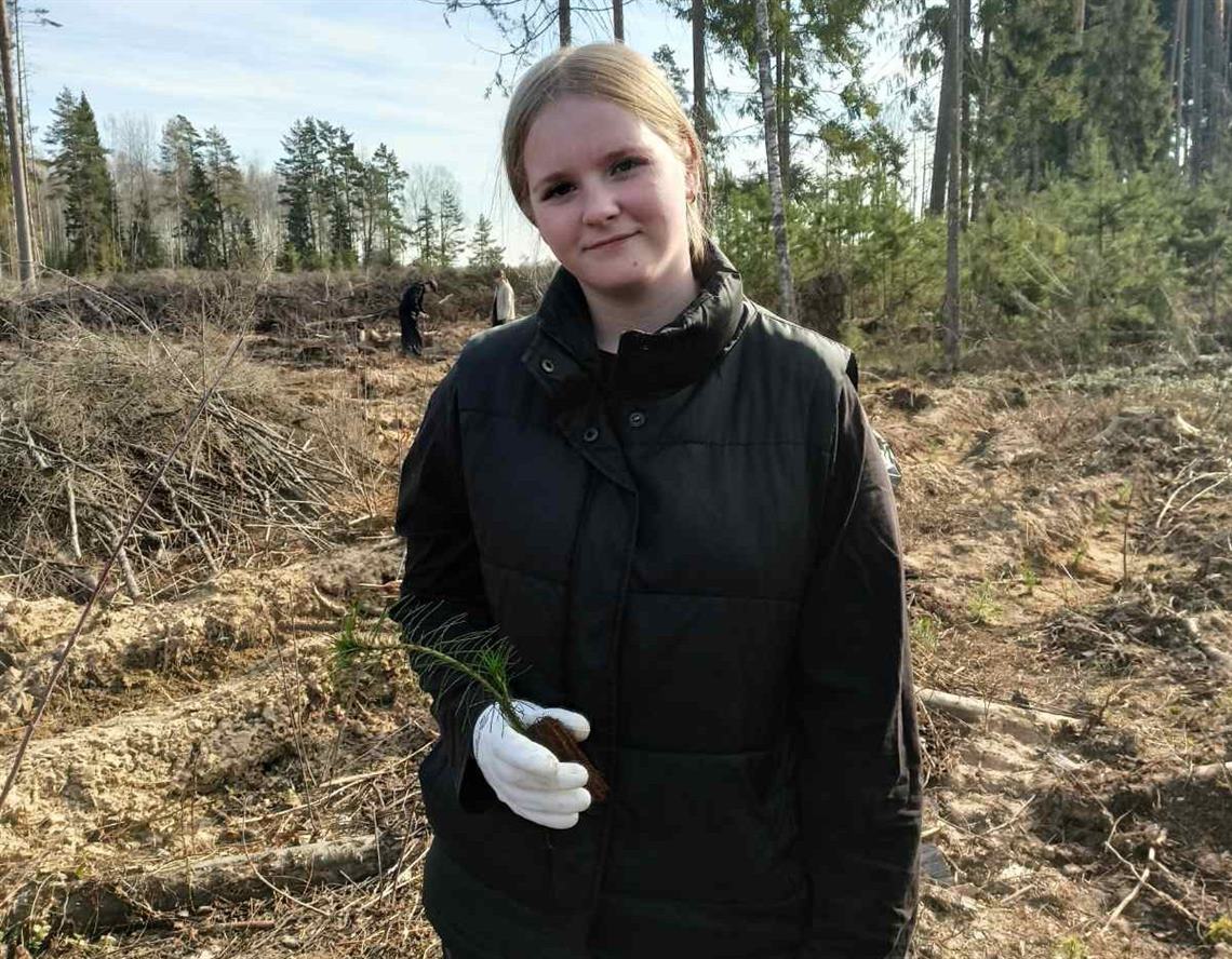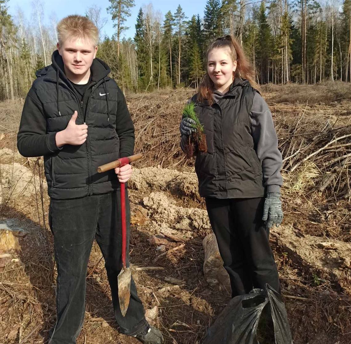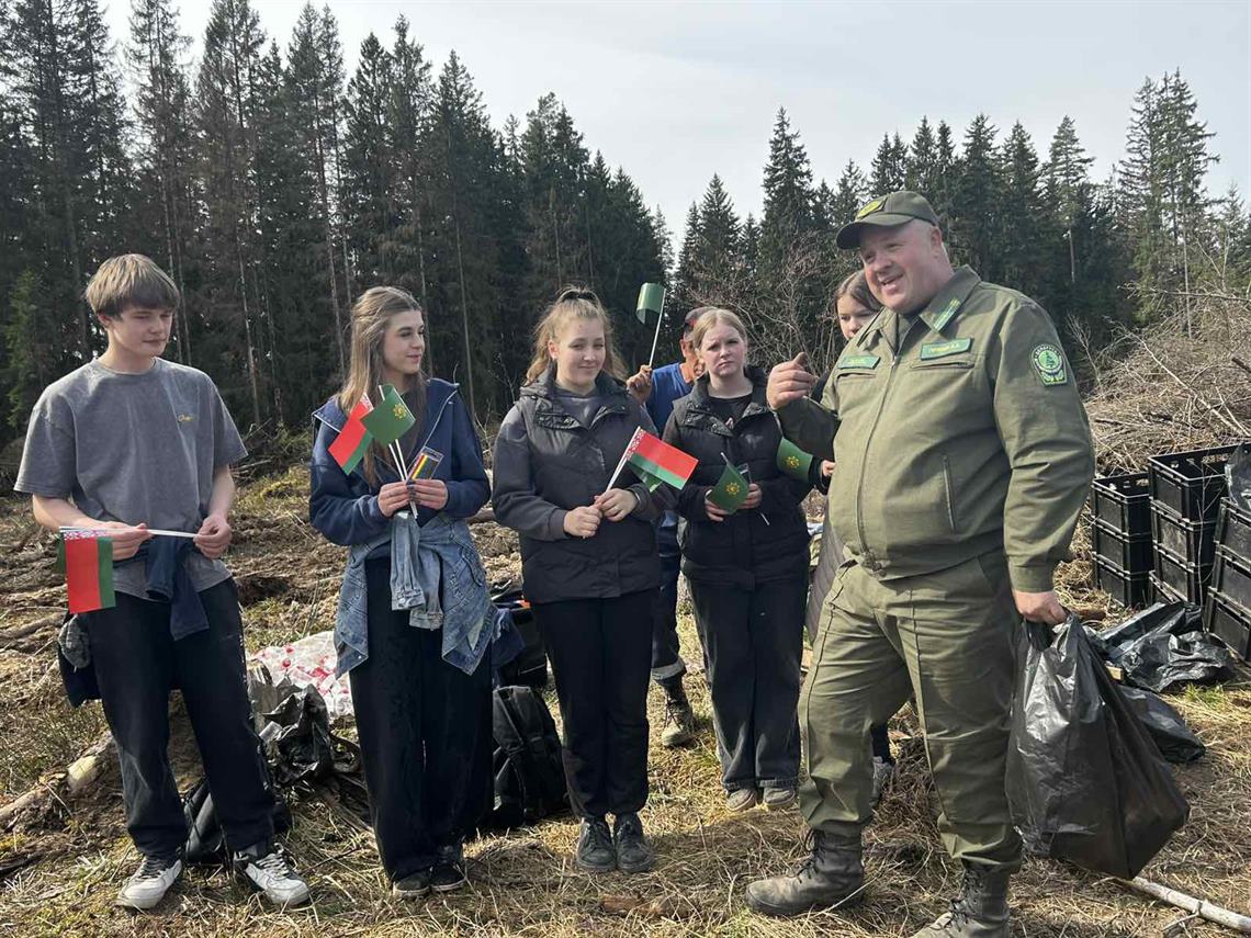 На участке в 1 га Крупского лесничества посадили более 5000 молодых сосен. Тем, кто быстро и качественно выполнил работу, вручили флажки Республики Беларусь и министерства лесного хозяйства.