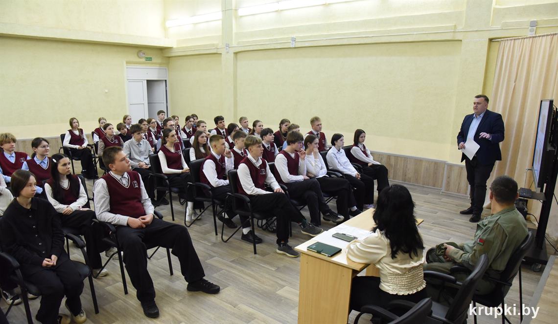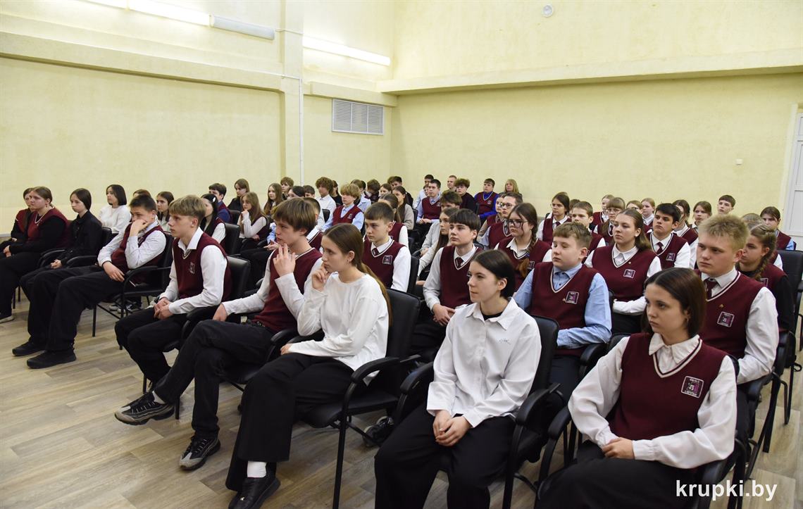 Людмила Куксина, главный специалист отдела идеологической работы и по делам молодежи Крупского райисполкома, рассказала школьникам о правилах безопасного поведения в интернете, противодействии киберпреступности и иным опасностям, таящимся в глобальной сети.