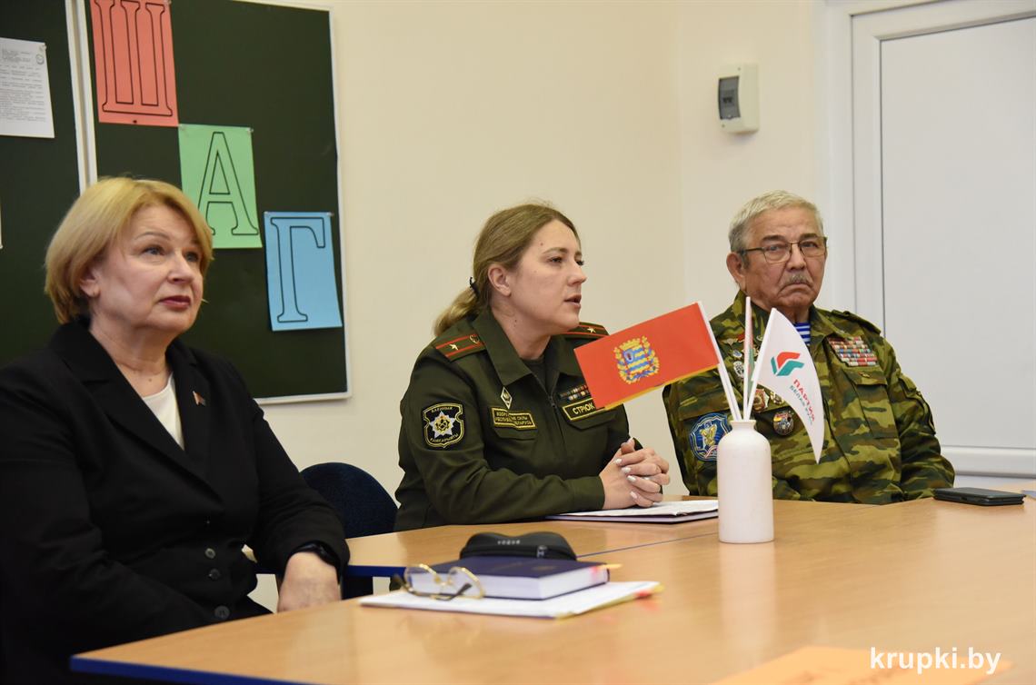 Компетентными мнениями делились председатель Крупского районного отделения Белорусской партии «Белая Русь» Ирина Шамашова, начальник обособленной группы (Крупского района) военного комиссариата Борисовского и Крупского районов Минской области Оксана Стрюк, заместитель председателя Крупской районной организации ОО «Белорусский союз офицеров», подполковник в отставке Юрий Герасимов, член Белорусского союза ветеранов войны в Афганистане, майор медицинской службы в отставке Юрий Доржиев, действующие военнослужащие Григорий Лучина и Тимофей Раков.