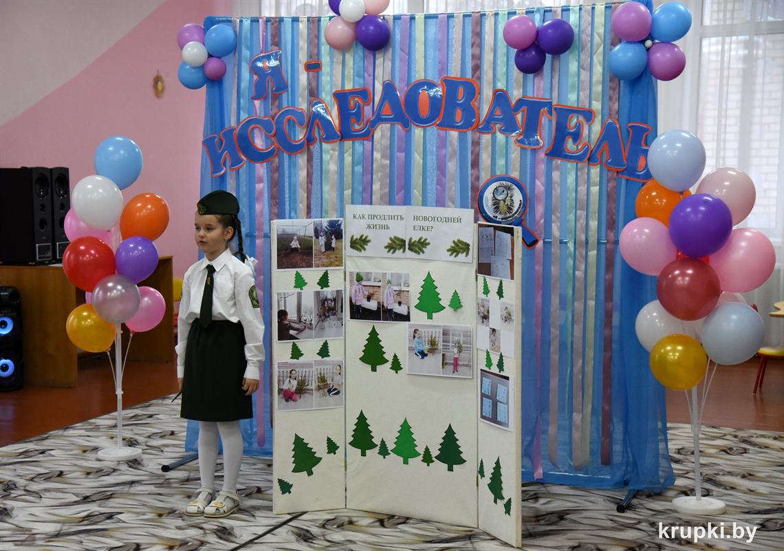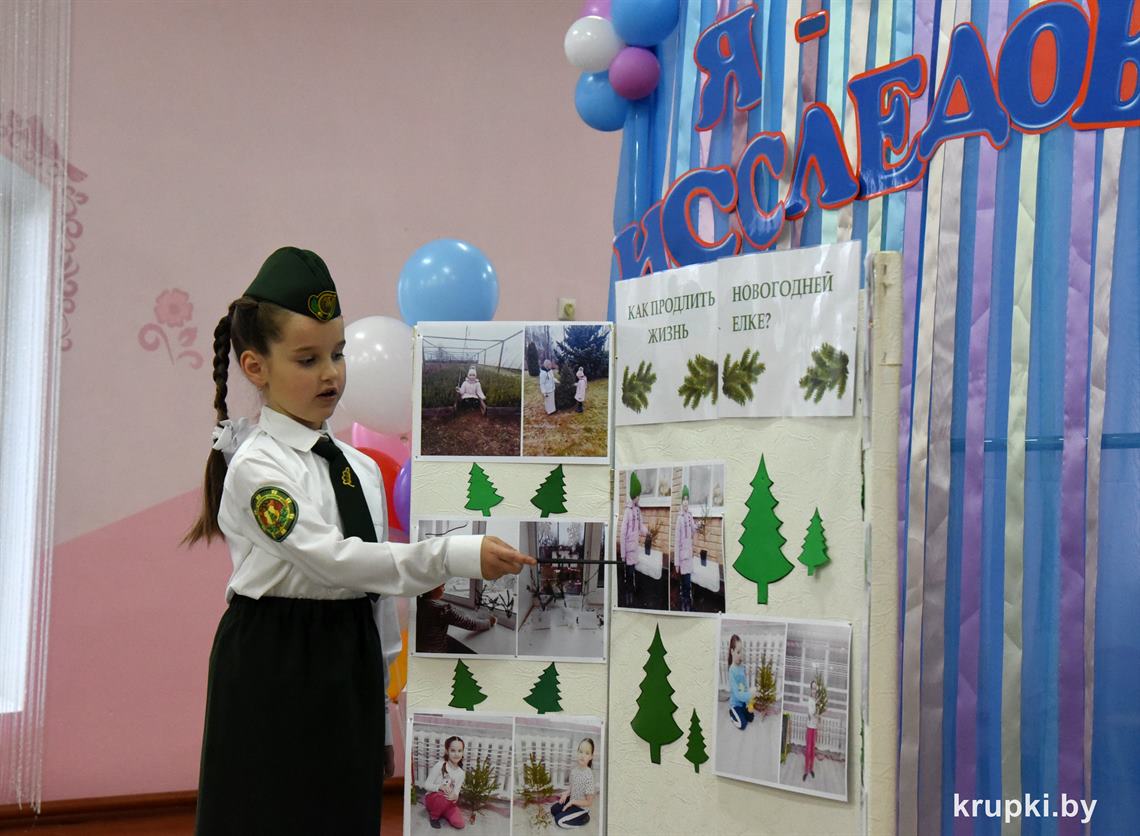 Яна Круглик из детского сада № 2 г. Крупки изучала, как продлить жизнь новогодней ёлке, Алёна Декань из Бобрской СШ – полезные свойства сухофруктов.