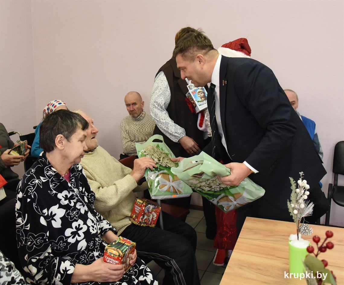Поздравительную миссию поддержало руководство Крупской ЦРБ, управления по труду, занятости и социальной защите райисполкома, Крупского ТЦСОН, а также волонтеры Белорусского Общества Красного Креста.