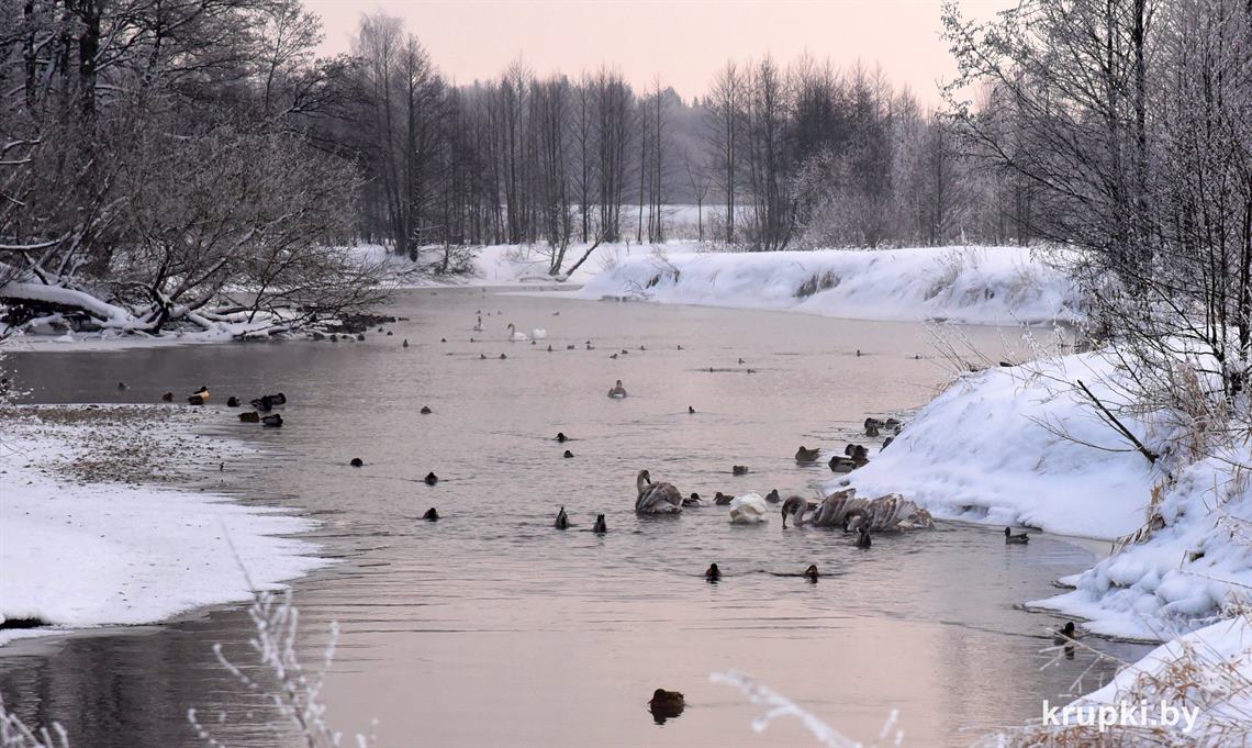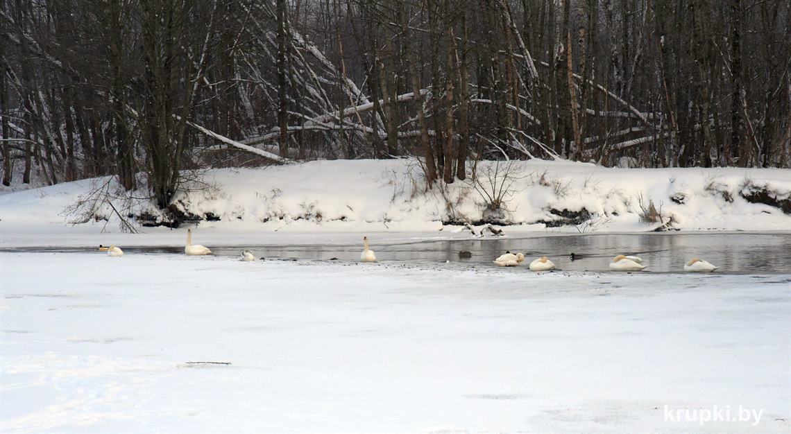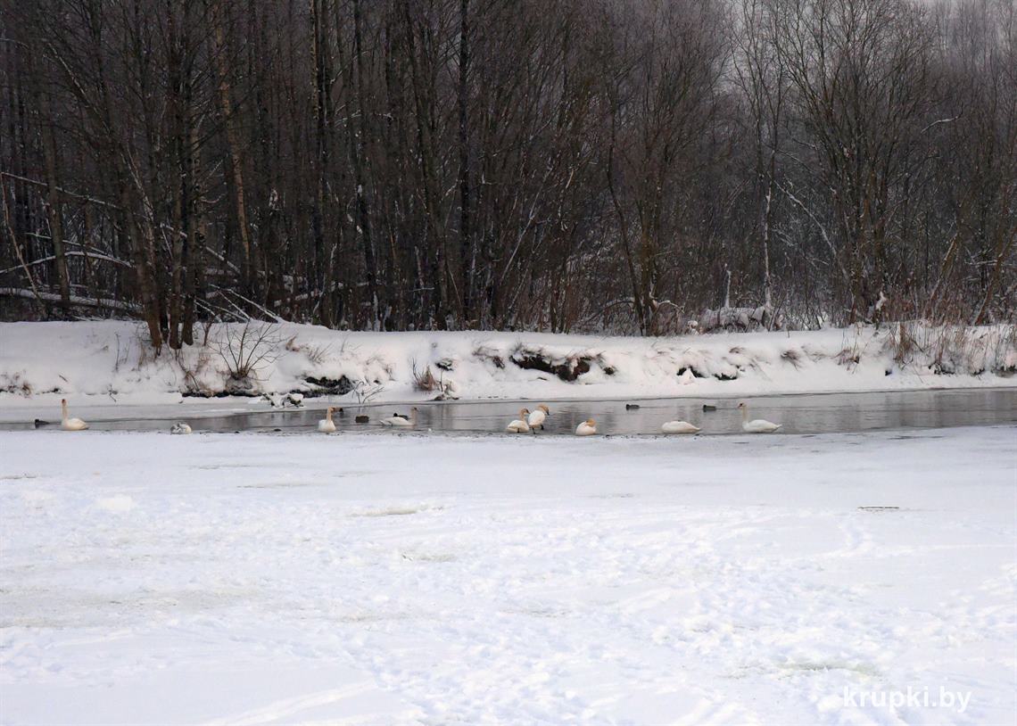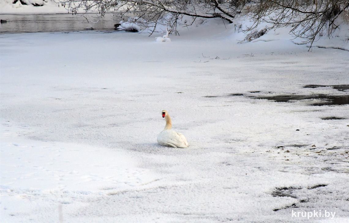 Спешим успокоить крупчан – не стоит волноваться! Лебеди находятся под ежедневным наблюдением районной инспекции природных ресурсов и охраны окружающей среды и РОЧС. Птицы, которые сидят посередине водоема, отдыхают. Они долгое время могут сидеть неподвижно, поджав под себя лапы. Так они экономят энергию. Время от времени могут взмахивать крыльями, но не взлетать. Это не значит, что лебеди примерзли. Так они разминаются.
