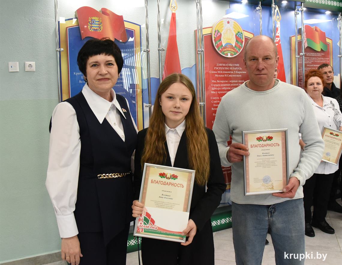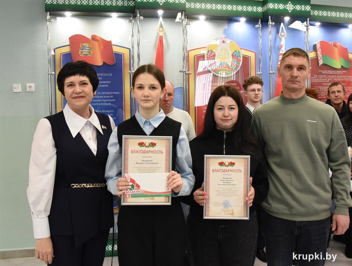 Начальник управления по образованию и спорту райисполкома Татьяна Стибикина наградила учащихся, пополнивших копилку достижений Крупщины яркими победами. Благодарности вручены их родителям.