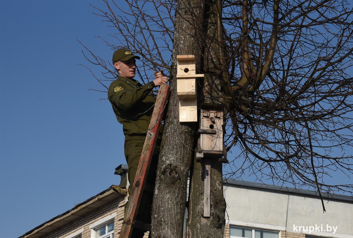 – Синицы – очень полезные птицы, – продолжает Наталья Александровна. – Это одни из самых эффективных естественных защитников лесных культур и садов, уничтожающие вредителей круглый год. Пара синиц с потомством за лето способна очистить от насекомых до 40 деревьев. Они поедают гусениц, тлю, жуков и их личинки. А чтобы птички поселились на территории детского сада, мы вам привезли синичники. Работники лесничества установили синичники на деревьях.