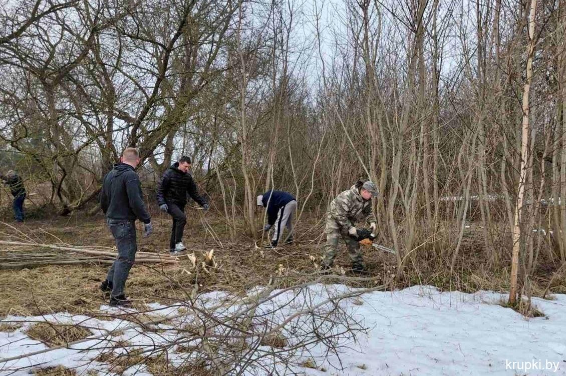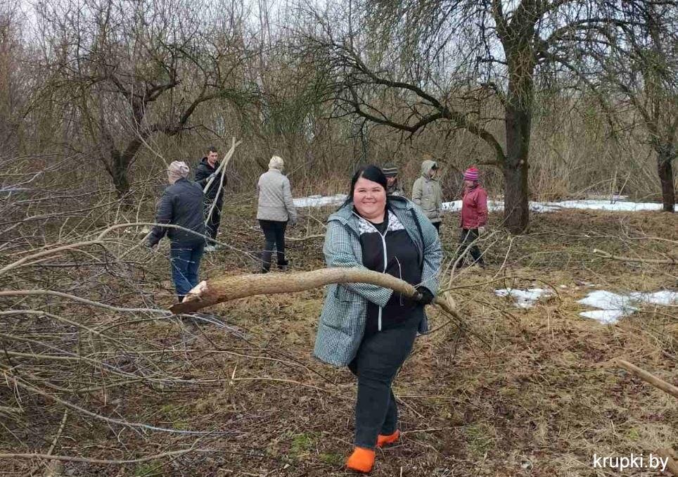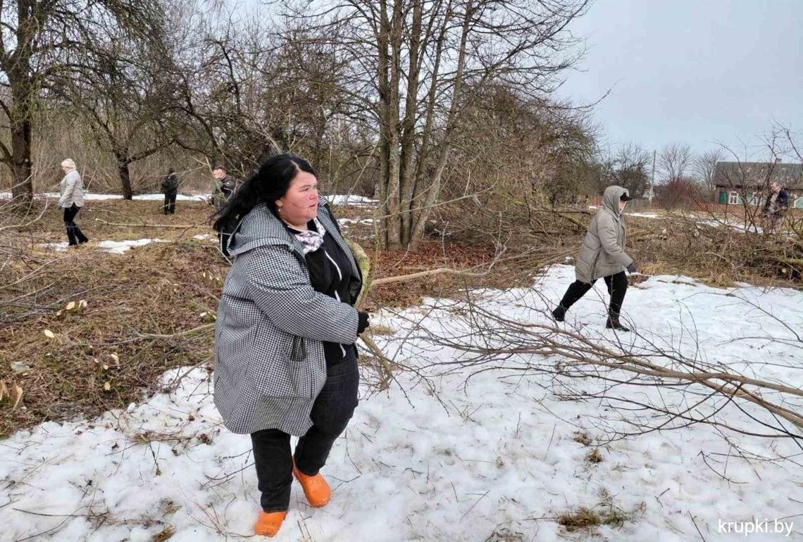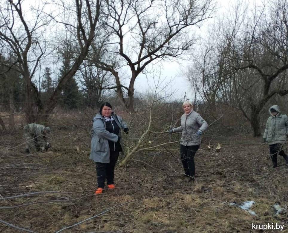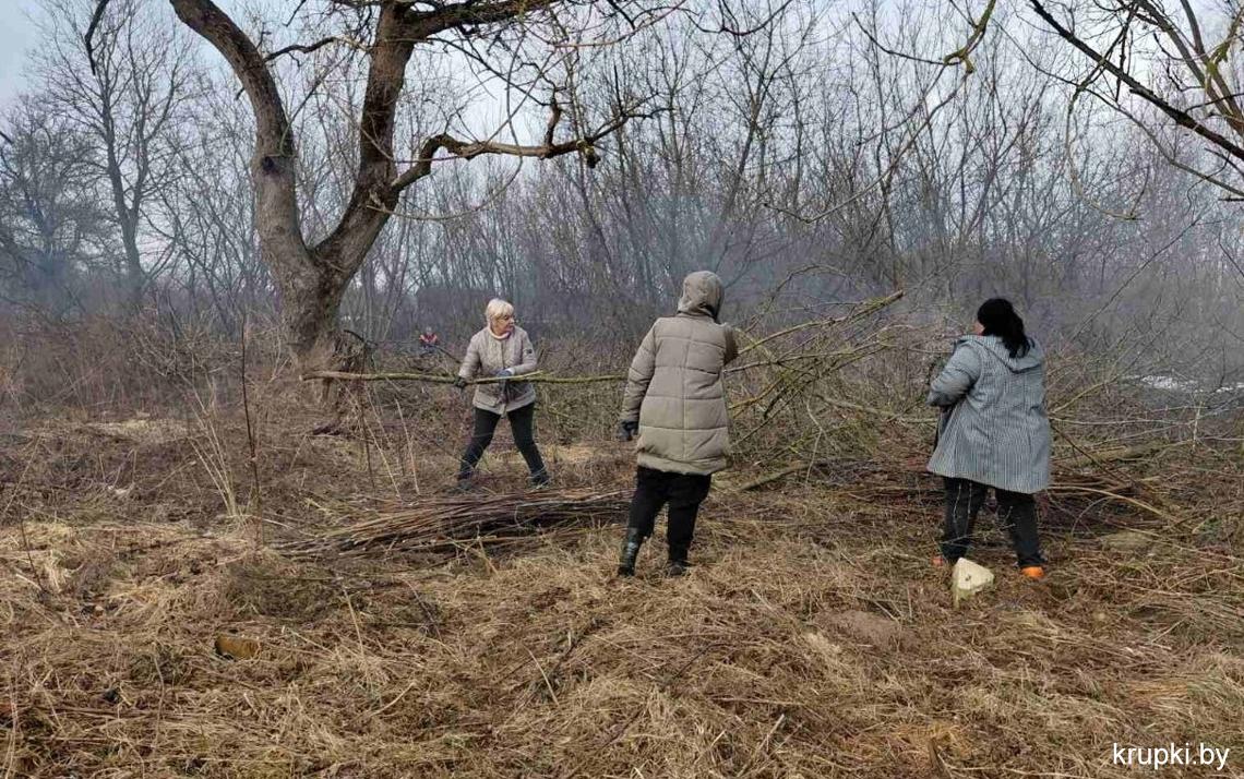 Под руководством председателя Крупского районного Совета депутатов Елены Домаренок и депутата Минского областного Совета Ирины Потылкиной участники приводят в порядок подъездную дорогу к МТК–1100: произведена вырубка кустарника, очистка обочины от прошлогодней травы.
