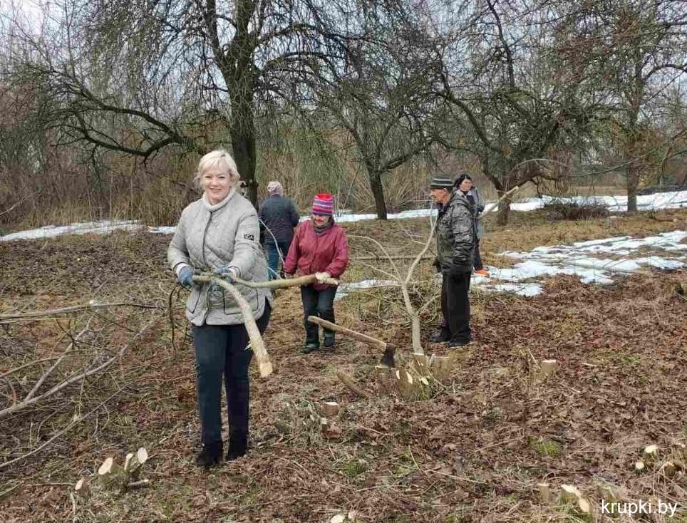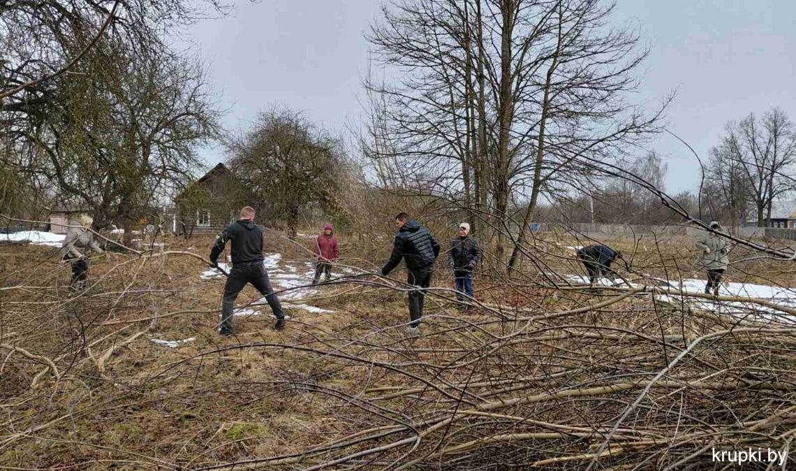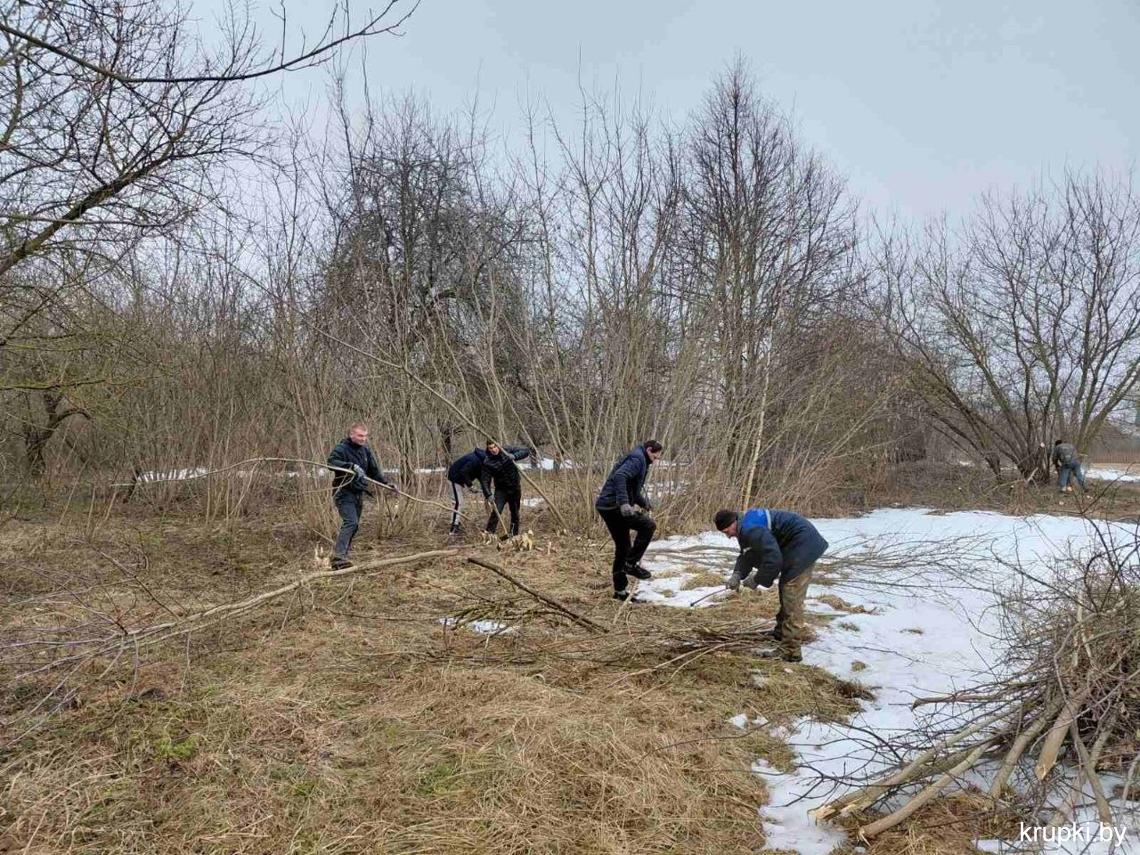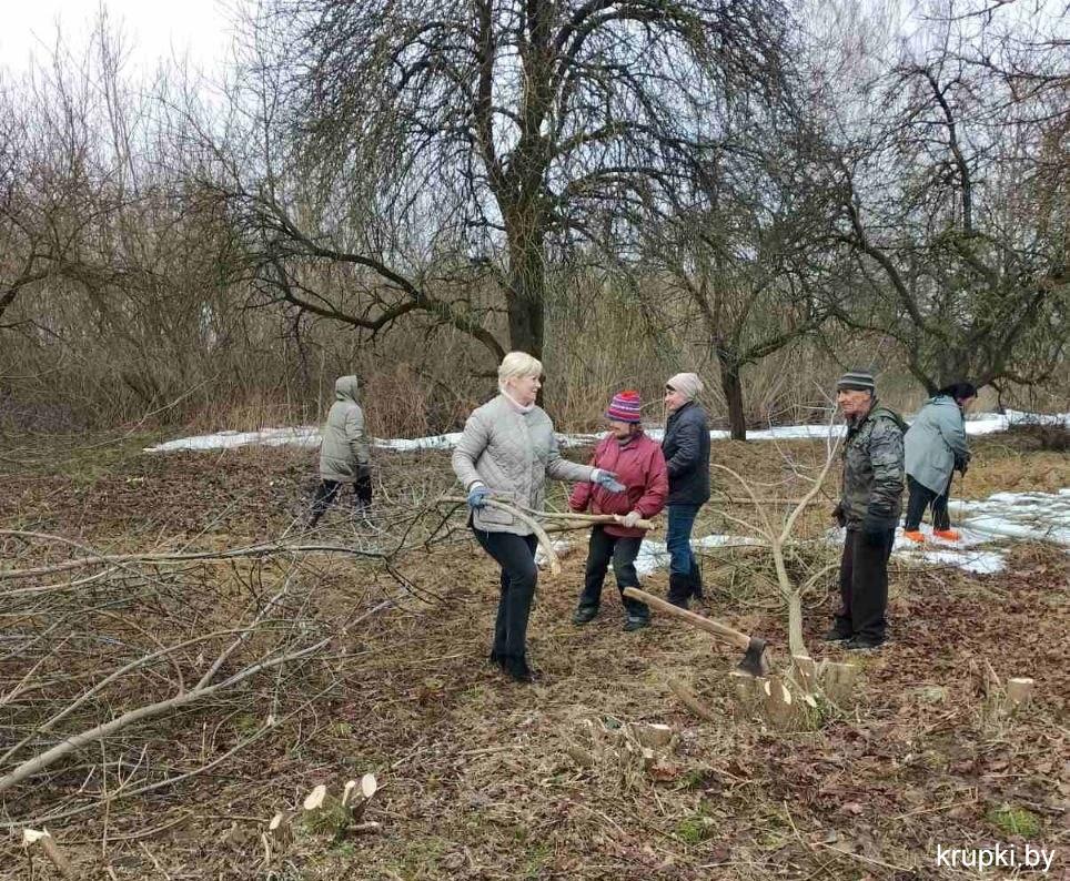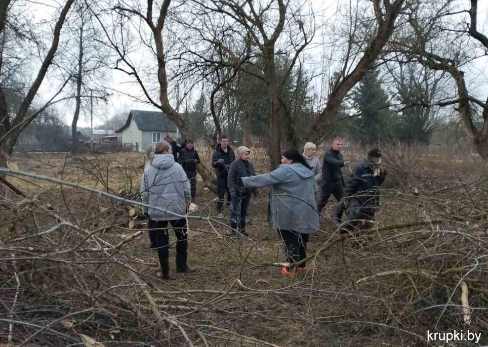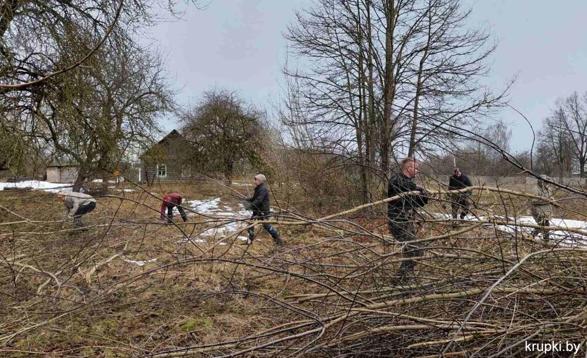 Под руководством председателя Крупского районного Совета депутатов Елены Домаренок и депутата Минского областного Совета Ирины Потылкиной участники приводят в порядок подъездную дорогу к МТК–1100: произведена вырубка кустарника, очистка обочины от прошлогодней травы.