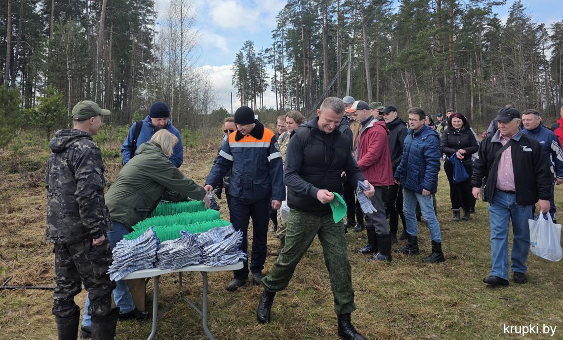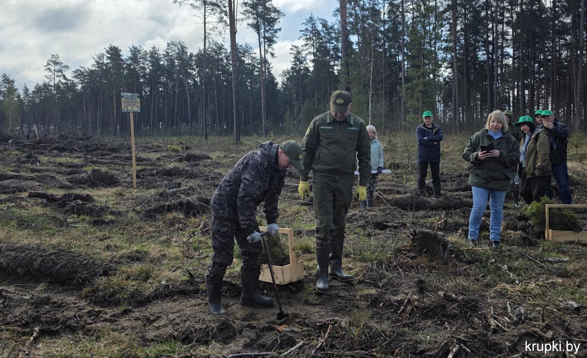 Приветствовал участников посадки директор Крупского лесхоза Николай Усеня. Был проведен инструктаж по охране труда, технологиям посадки. Всего было высажено порядка 30 тысяч сеянцев елей и сосен.